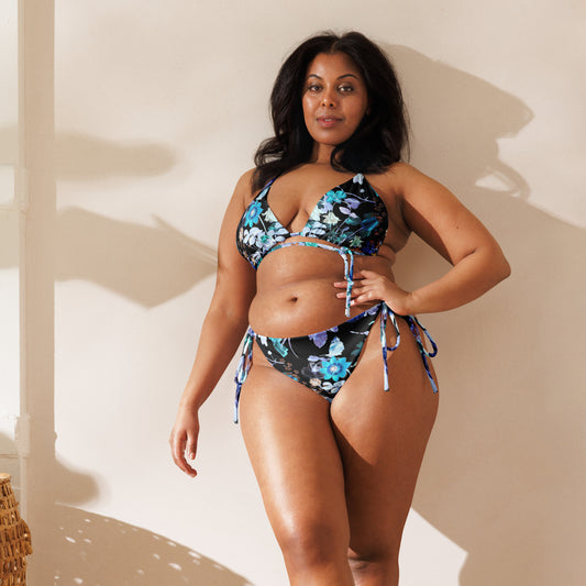 Botanical Bliss Blue Print Recycled String Bikini