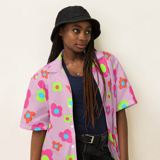 Floral Doodles Pink Mauve Unisex button down T-shirt