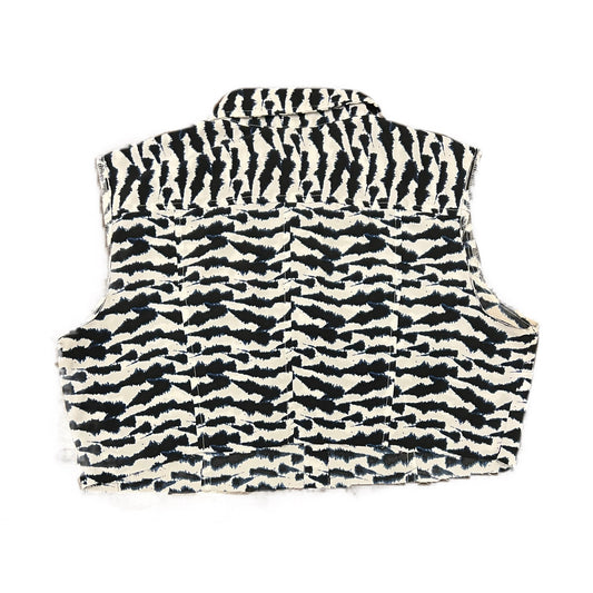 Zebra Print Cropped Sleeveless Button-Up Top