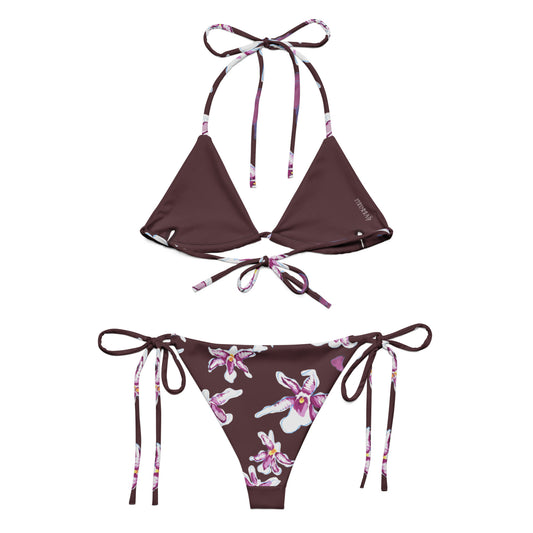 Sandy Orchid Blooms Recycled Brown String Bikini