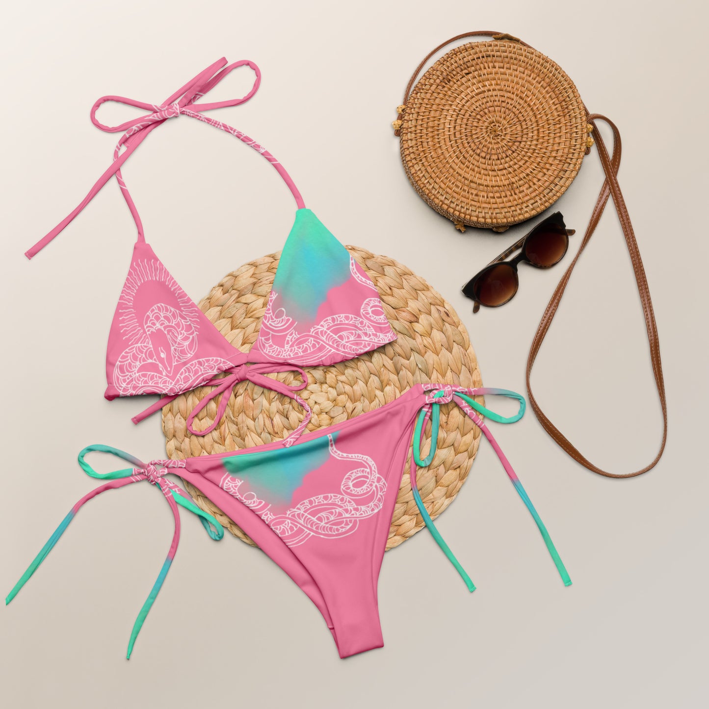 Blue Heart Eternal Love Snake recycled string pink mystical bikini
