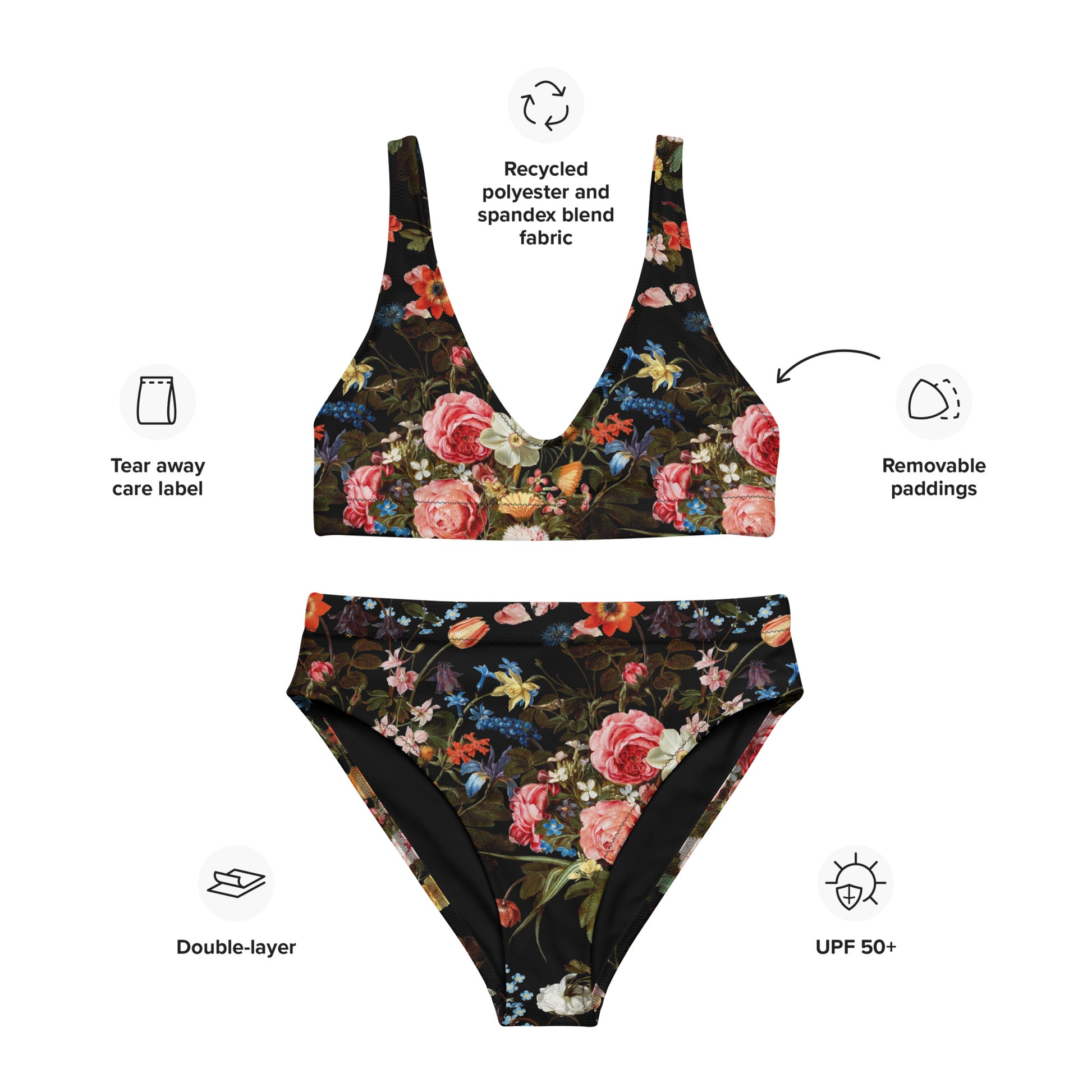 This swimsuit is a delightful blend of elegance and playfulness, featuring vibrant blossoms and lush greenery. Removable pads and its double-layer make it comfy to wear all day, whether you're relaxing by the pool or enjoying the beach. Embrace the beauty of nature and celebrate sunny moments in this stunning botanical-inspired bikini, where fashion meets the serenity of a blooming garden.