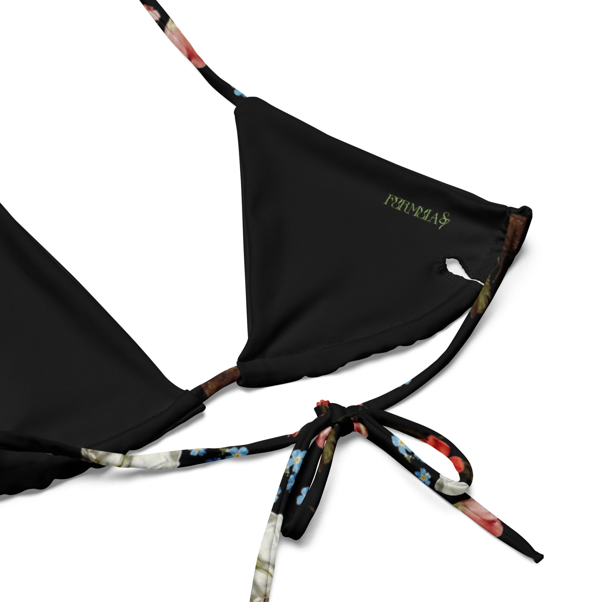 Stay comfortable and stylish all summer with this All-Over Print Recycled String Bikini set. It’s made from soft recycled polyester with double-layering and UPF 50+. Adorned with vibrant blossoms and lush greenery, this swimsuit effortlessly combines elegance with a touch of playfulness. The adjustable straps and comfortable fit ensure confidence and style, whether you're lounging by the pool or making a splash at the beach. Embrace the beauty of nature and celebrate your sun-soaked moments in this stunning botanical-inspired bikini, where fashion meets the tranquility of a blooming garden.