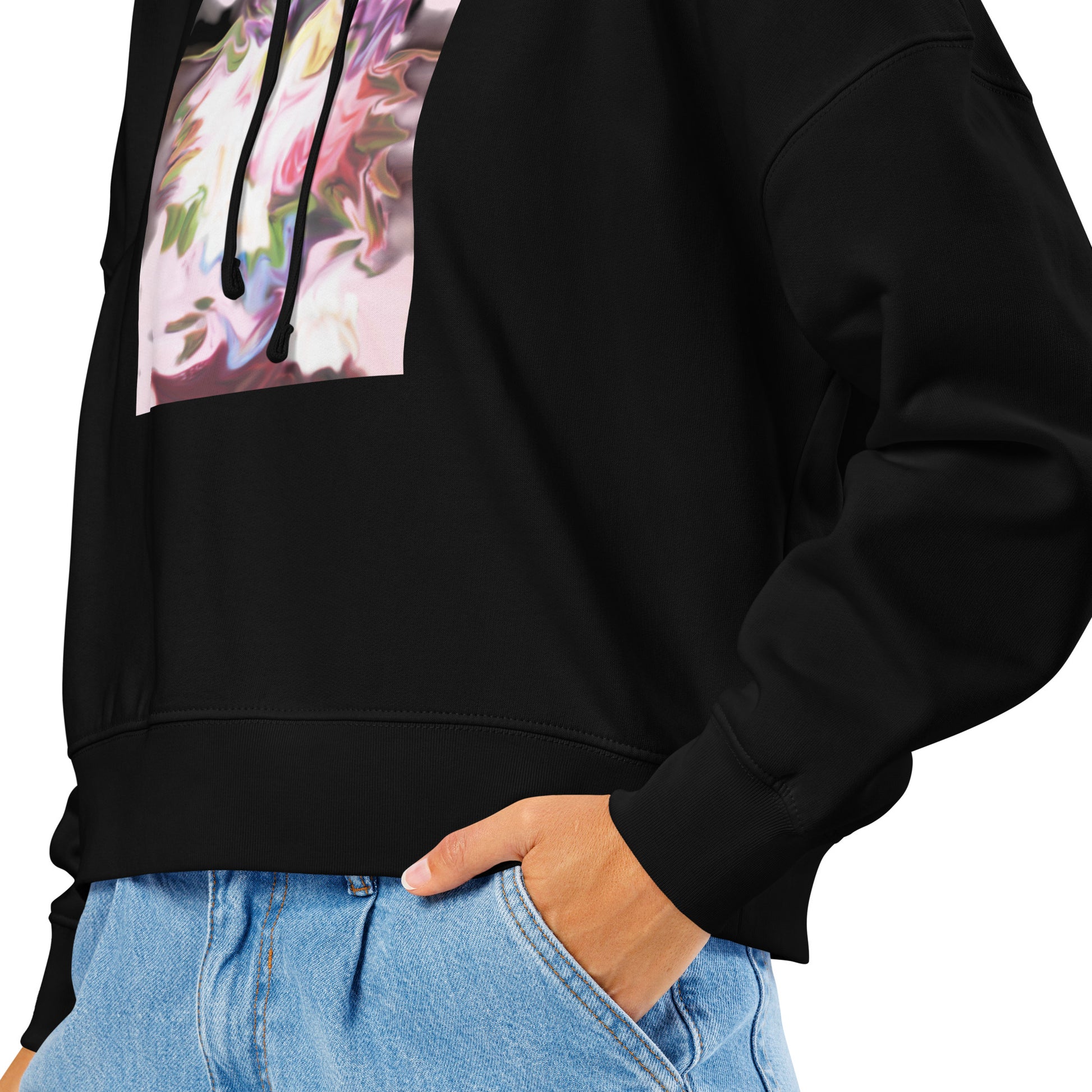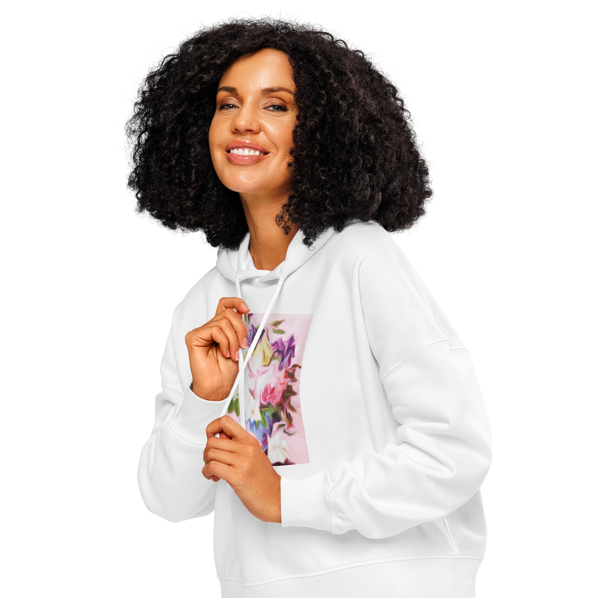 Featuring the Electric Bloom print, an abstract floral bouquet print that mirrors a bold, electric wave-like design. This hoodie bursts with lively colors—bright pinks, blues, yellows, and greens—set against a striking black, bubble pink, or white base. The vibrant, energetic pattern makes this hoodie as unique and playful as your personal style.