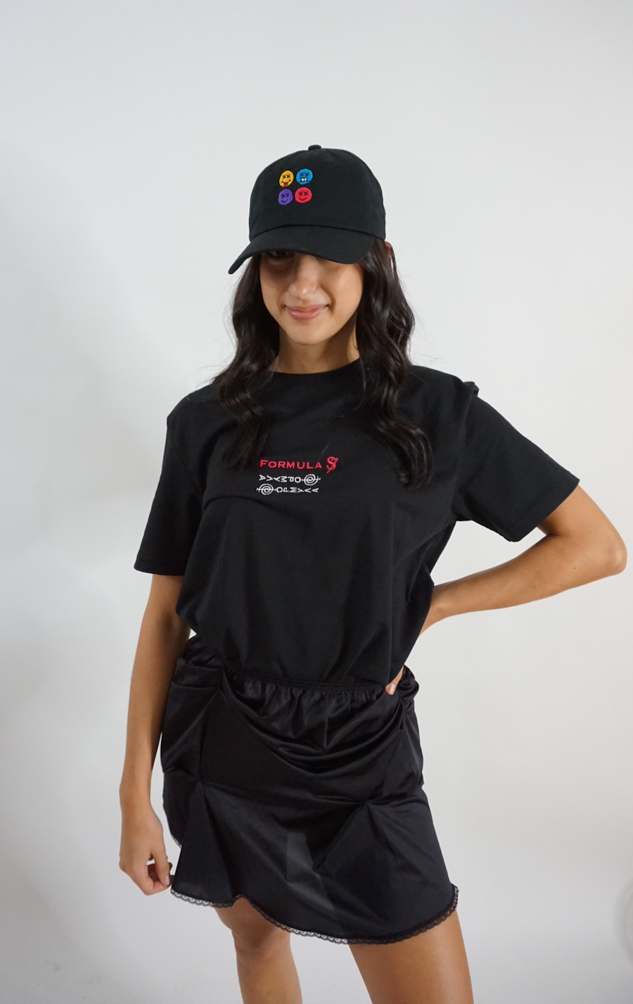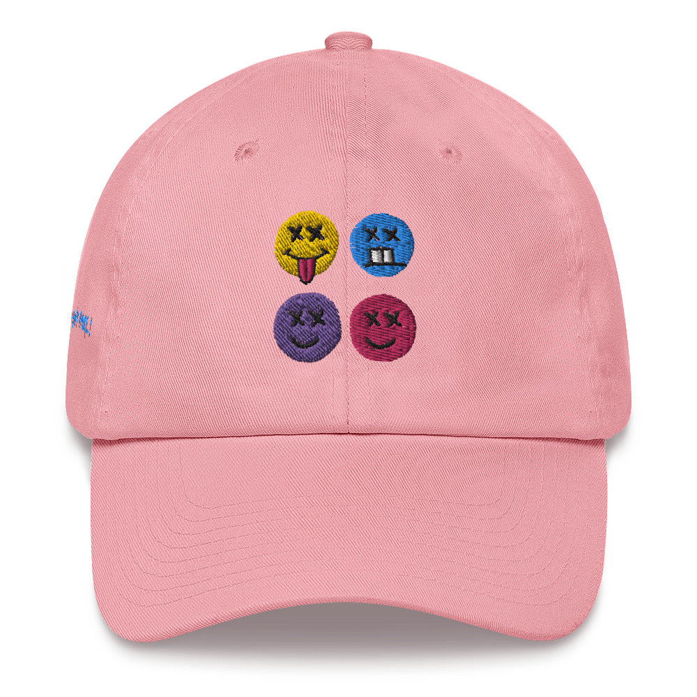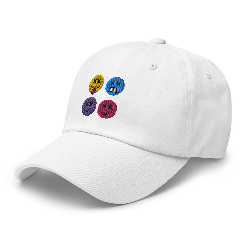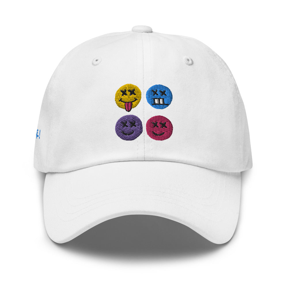 Dad hats aren't just for dads. This one's got a low profile with an adjustable strap and curved visor. Featuring our + MANY AMORE! original emoji faces embroidered on the front. Inspired by the past year's many moods, the faces celebrate FS7's first birthday. A slight change from the original colored print, the first face is yellow, sticking out a pink tongue for a silly mood. Wanting to use roman numerals in the design, the blue face originates from XXIII, a subtle nod to out Founder's birthday being in 1997, The XX turned into the eyes and the III became the mouth. This face, next to the first one, stays consistent from the original print color. The two smiling faces below, are reimagined in purple and neon pink. The right side of the hat reads "+ MANY AMORE!" in our signature hand-painted font style, embroidered in a vibrant blue. On the back, the Formula S7 logo is embroidered in black. Practical and stylish, choose between 5 different color choices to perfectly match your outfits and personality!