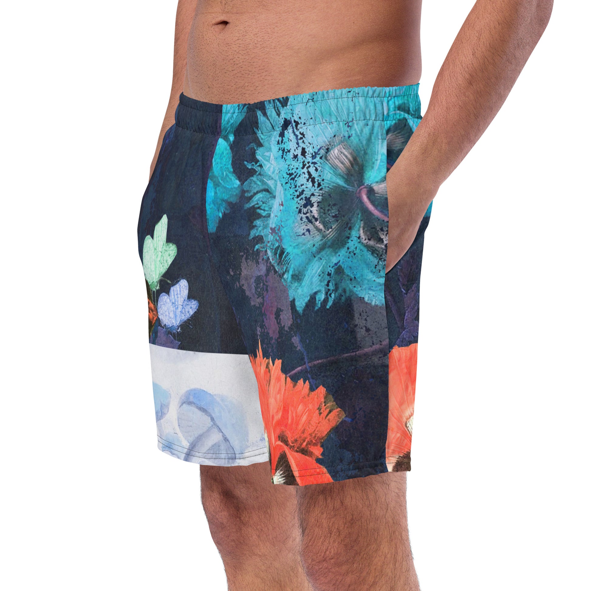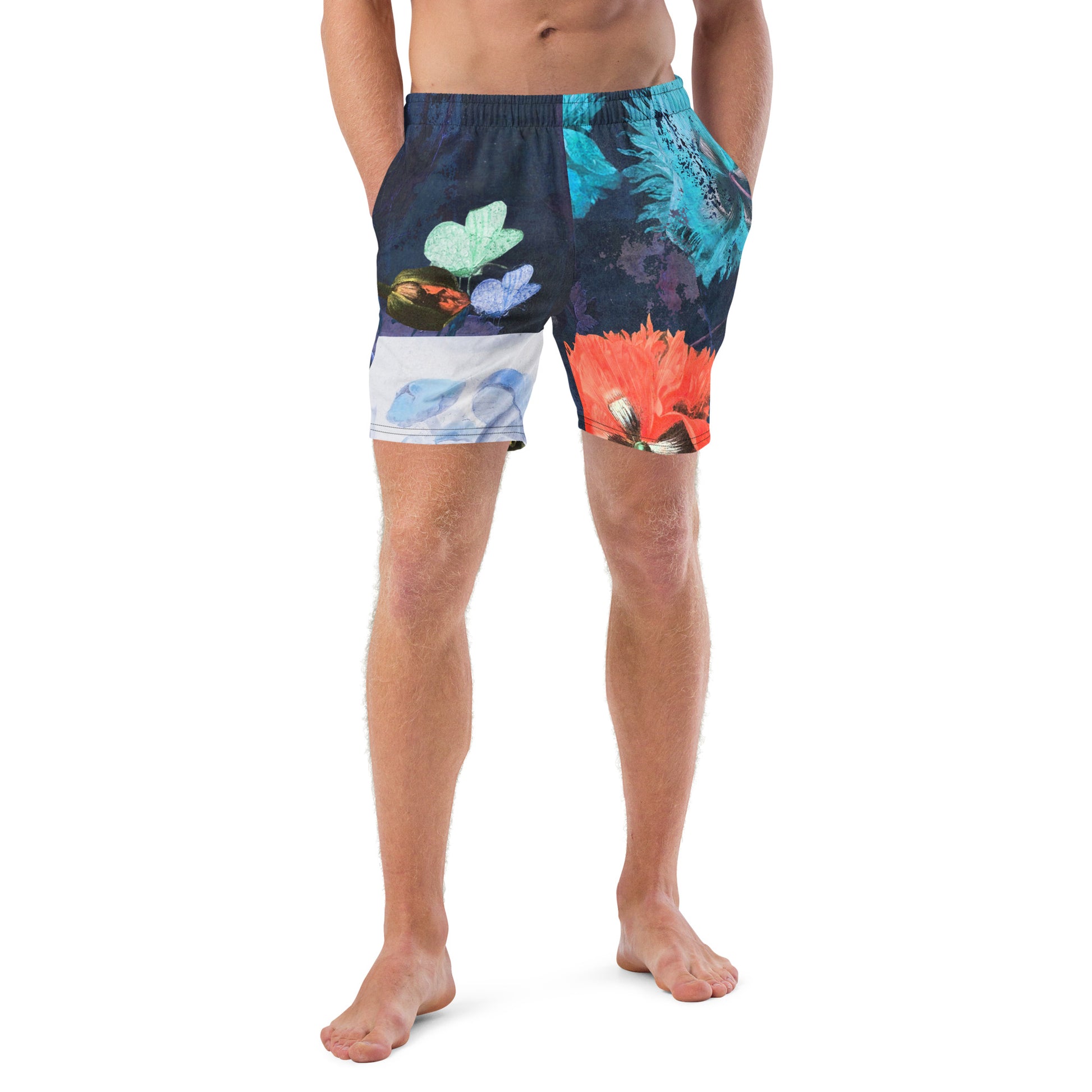 Introducing our Exquisite Floral Print Swim Trunks, where vibrant botanical beauty meets vintage-inspired style. These swim trunks are meticulously designed to make a statement both in and out of the water, allowing you to embrace your unique sense of fashion even while enjoying a day at the beach or poolside. Bursting with a myriad of vibrant colors and intricate patterns, the floral motifs create an eye-catching display of natural splendor. The vintage-inspired design adds a touch of timeless charm, evoking a sense of nostalgia and elegance. Within the floral design, delicate butterflies and charming mushrooms further enhance the allure of these swim trunks.