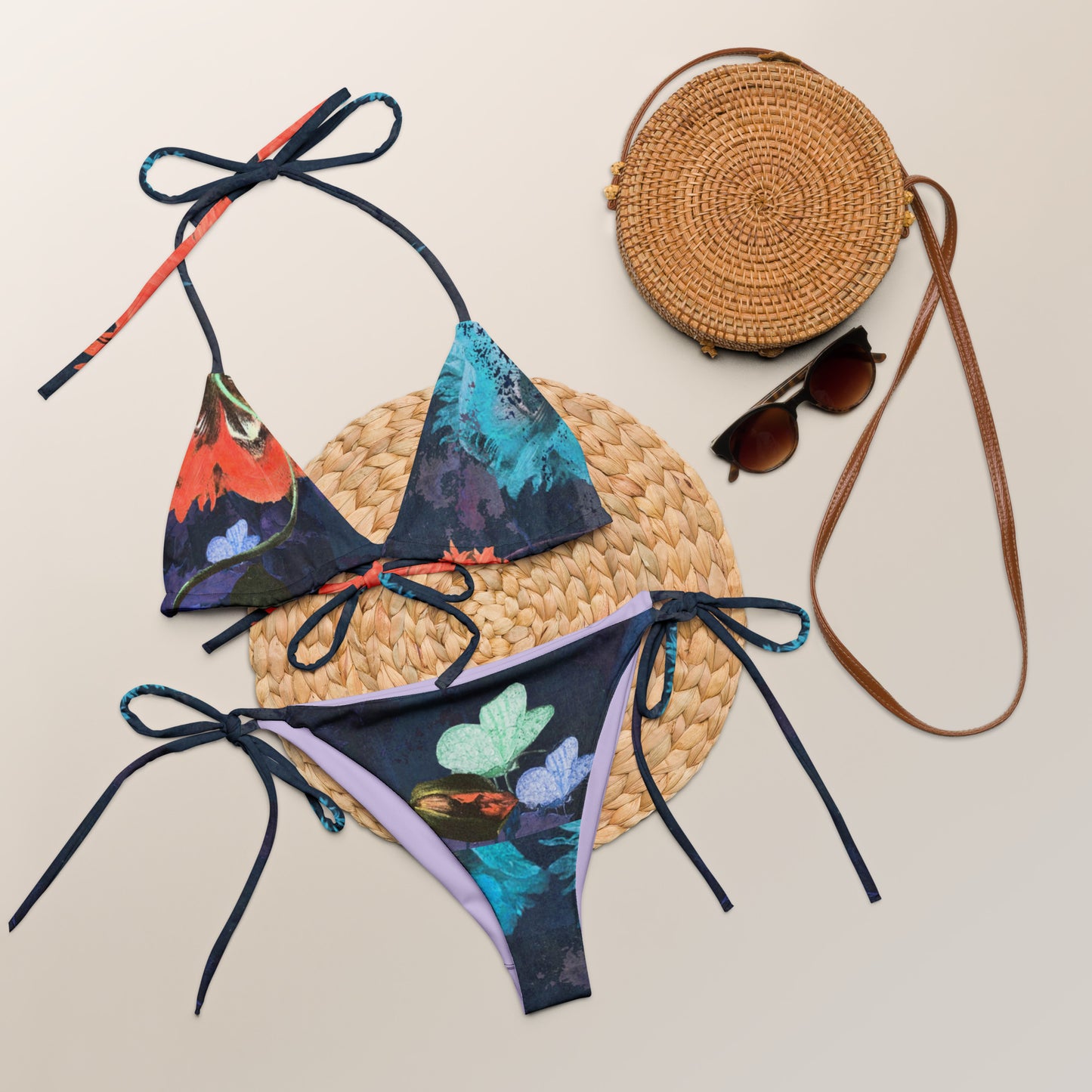 • To make your All-Over Print Recycled String Bikini last longer, thoroughly rinse it off after each use and get rid of any chlorine/salt residue.