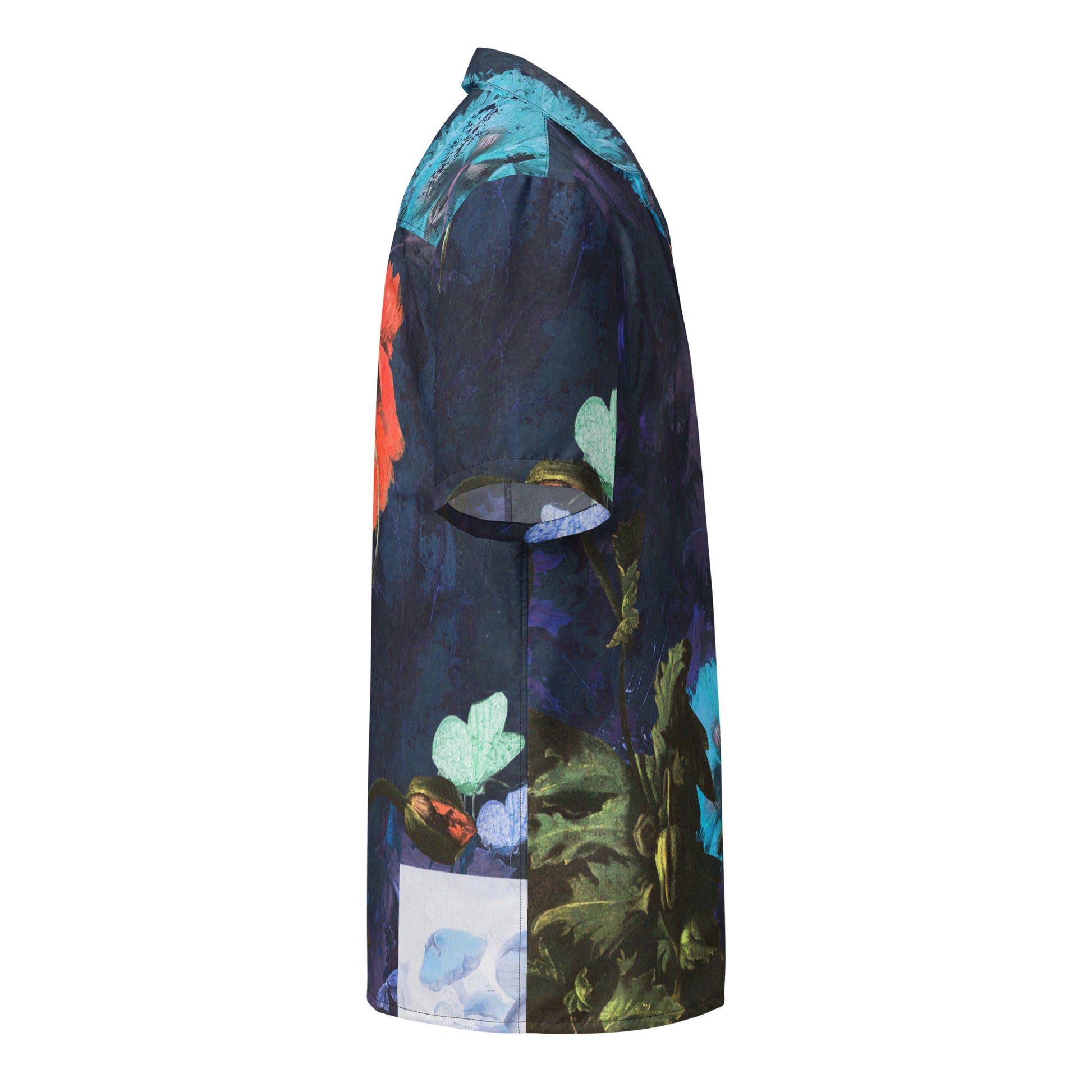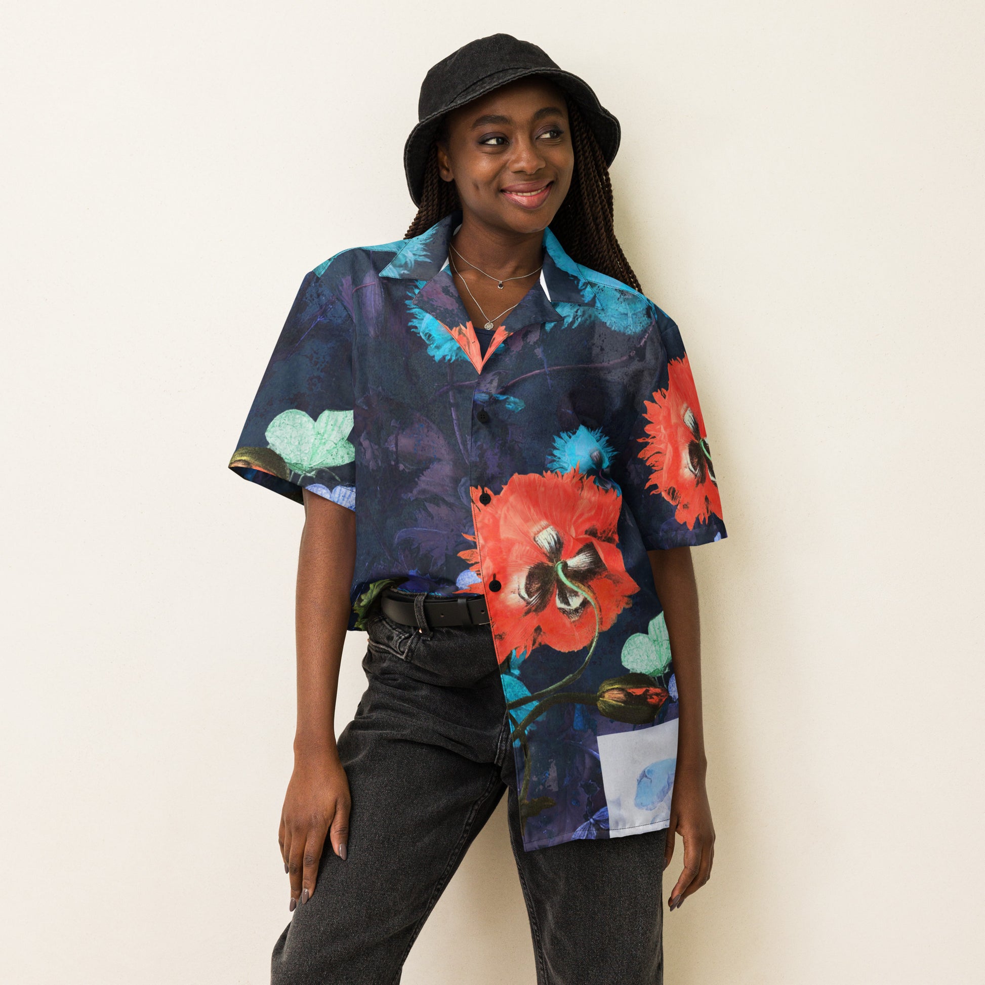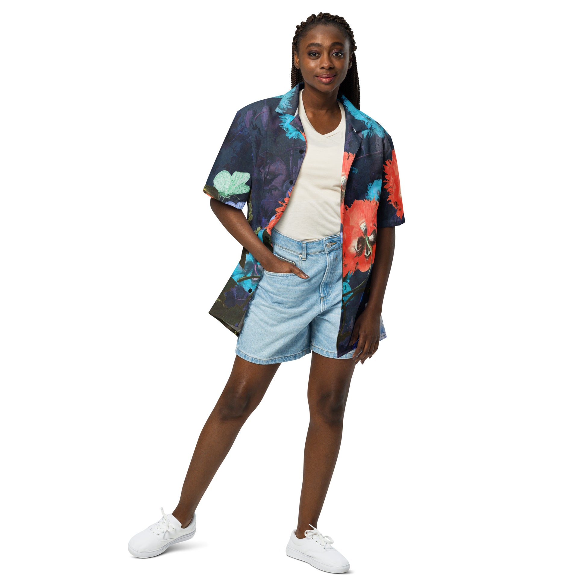 Introducing our Floral Print Button-Down Tee Shirt, a perfect blend of vintage charm and botanical beauty. This exquisite tee features a captivating floral print bursting with vibrant colors and intricate patterns, evoking timeless elegance and natural splendor. Delicate butterflies and enchanting mushrooms add an extra layer of whimsy, symbolizing transformation and the magic of nature. Crafted from lightweight, moisture-wicking and wrinkle-resistant fabric, it ensures all-day comfort and versatility, whether dressed up or down. Ideal for casual outings, art gallery strolls, or special occasions, this statement piece will effortlessly elevate your wardrobe.