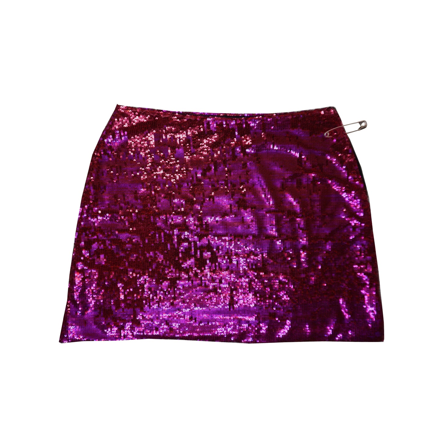 The glistening pink sequin fabric transforms a classic mini skirt into a show-stopping design. Wear this mini skirt to showcase your inner light. The dark Magenta Pink sequins and red undertones create a mesmerizing fiery fabric. Dress it up or down, transition between seasons and day to night outfits.