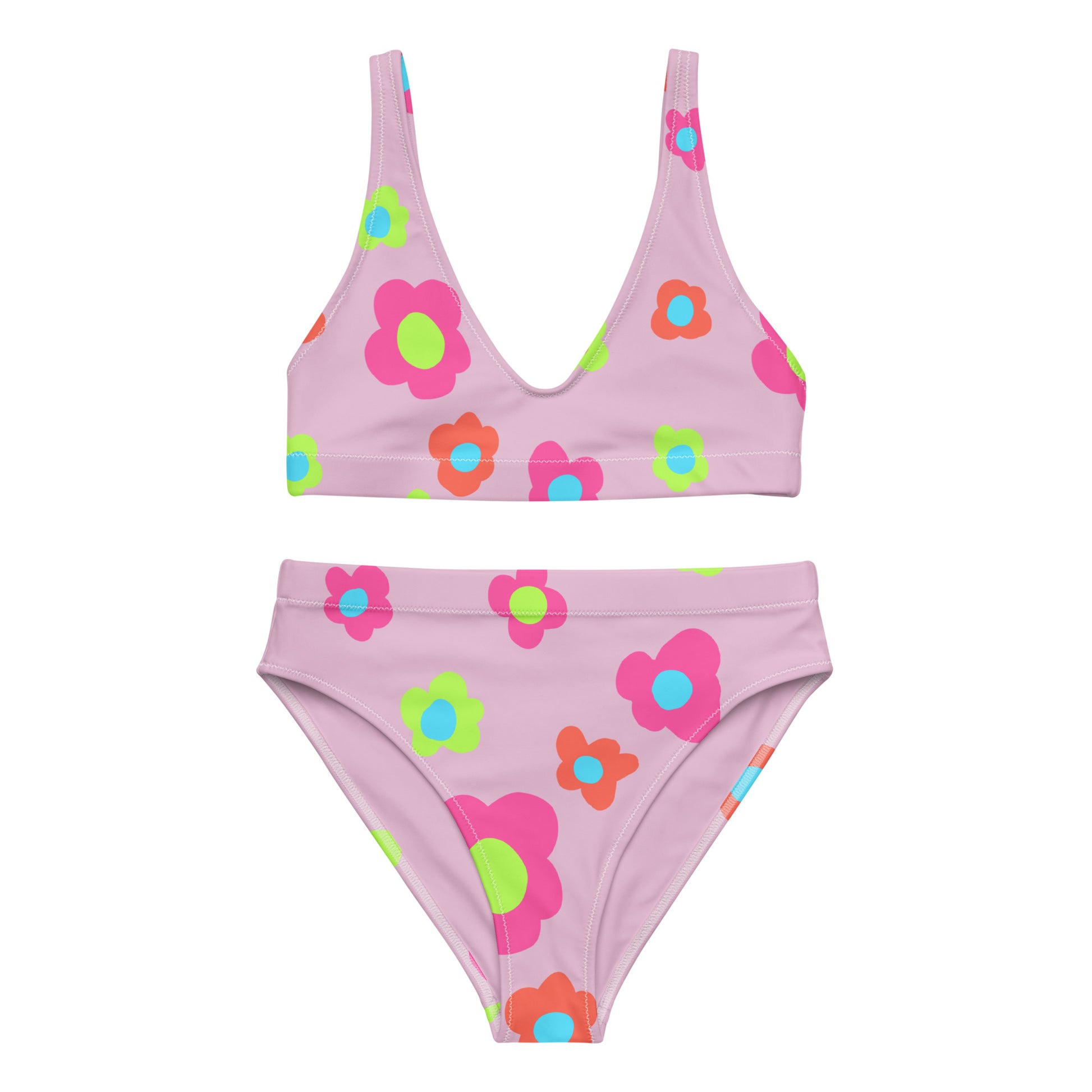 Floral Doodles Pink Print Recycled High-Waisted Bikini