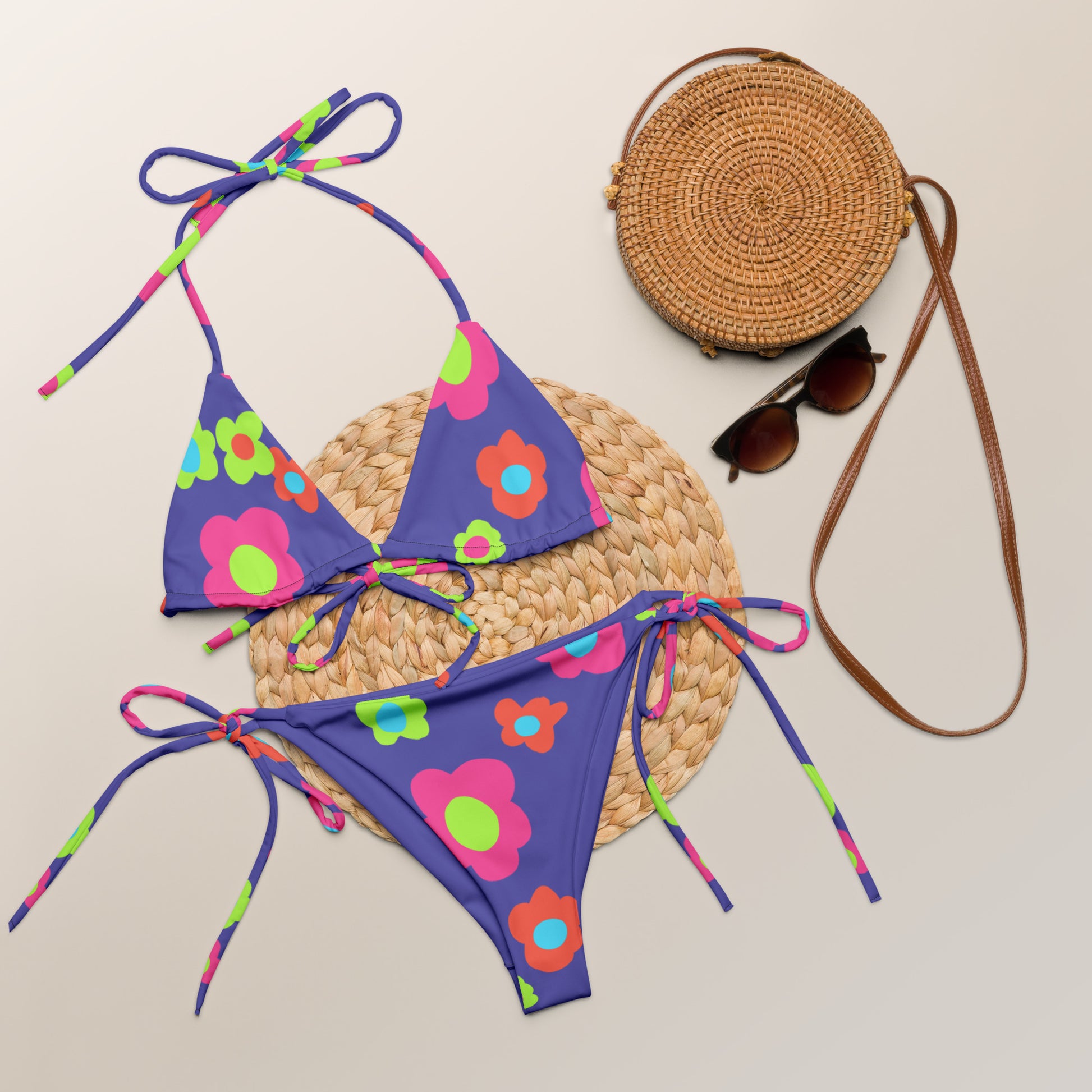 Embrace the captivating beauty of the Neon Floral Doodle Print with our Eco-Conscious String Bikini in Purple. Let the vibrant floral doodles and the soft Purple base color express your unique sense of style and eco-conscious values. Wear it proudly, knowing that you're making a Barbie core fashion statement while supporting a greener future. With this bikini, you can confidently showcase your individuality and love for the environment, all while looking effortlessly stunning at the beach or poolside.