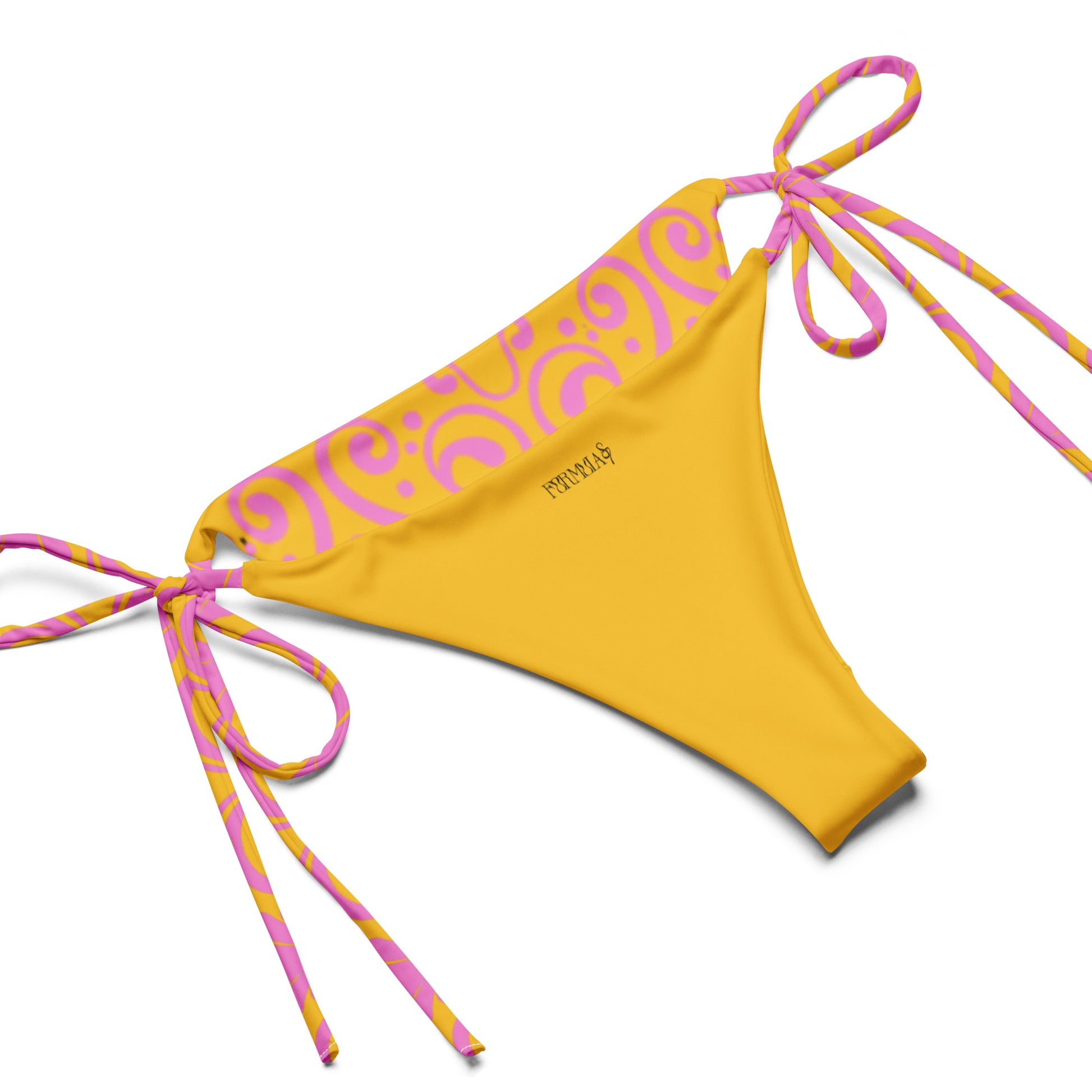 Embrace sunny days in this Bikini, where comfort meets whimsical charm. The mustard yellow hue of the bikini is beautifully complemented by the all-over pink damask-inspired print on the top featuring swirly hearts, seashell motifs, and playful dots that create a dreamy, nostalgic vibe. Crafted from ultra-soft, recycled polyester with double-layering and a built-in UPF 50+ protection, this bikini ensures you stay stylish and protected all summer long. Customize your look with adjustable straps, so you can style them to your preference. Whether lounging poolside or diving into the waves, this bikini set is your go-to for an effortless, chic swimwear experience. Get ready to make a splash and soak up the sun!