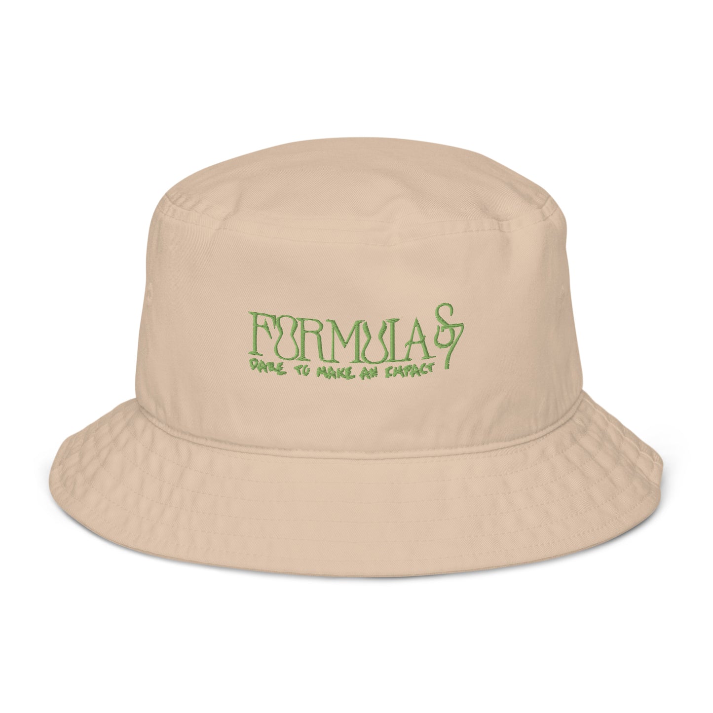 Make a stylish and eco-friendly choice with the organic bucket hat! This 100% cotton twill hat has the potential to become a favorite in your wardrobe thanks to its breathable material and clean look. Featuring the updated Formula S7 logo and slogan "dare to make an impact" embroidered in green on the front.