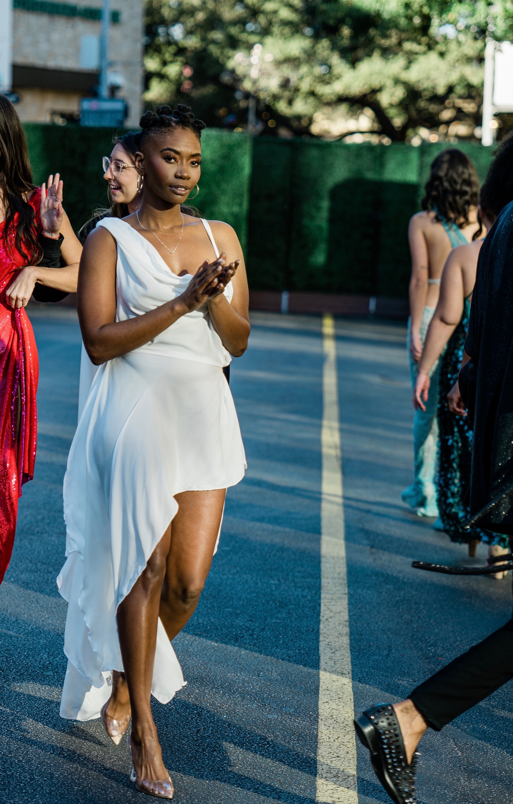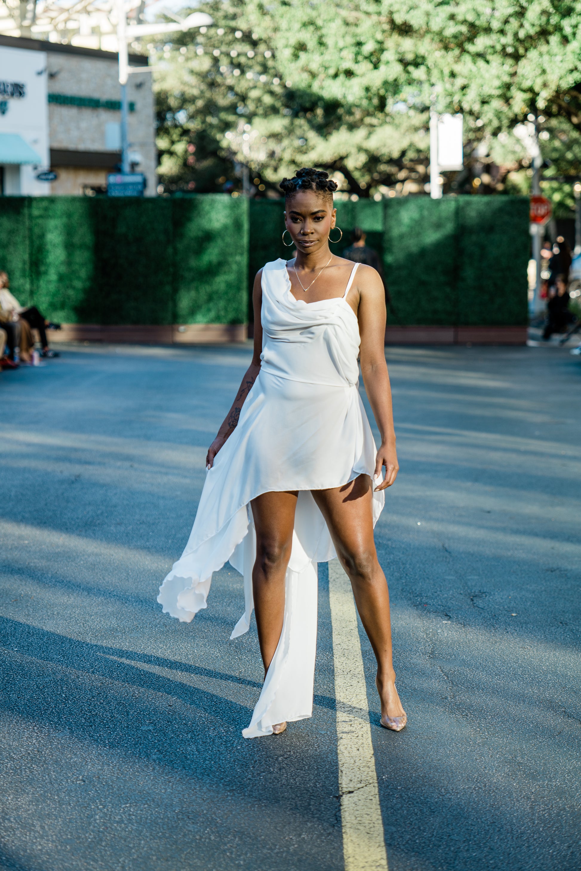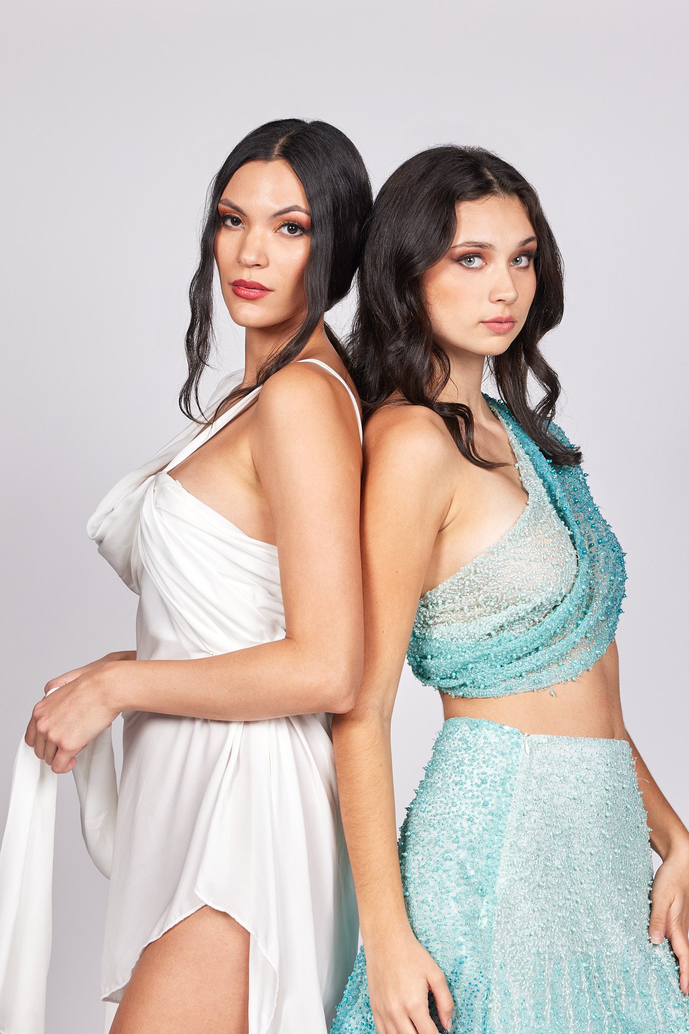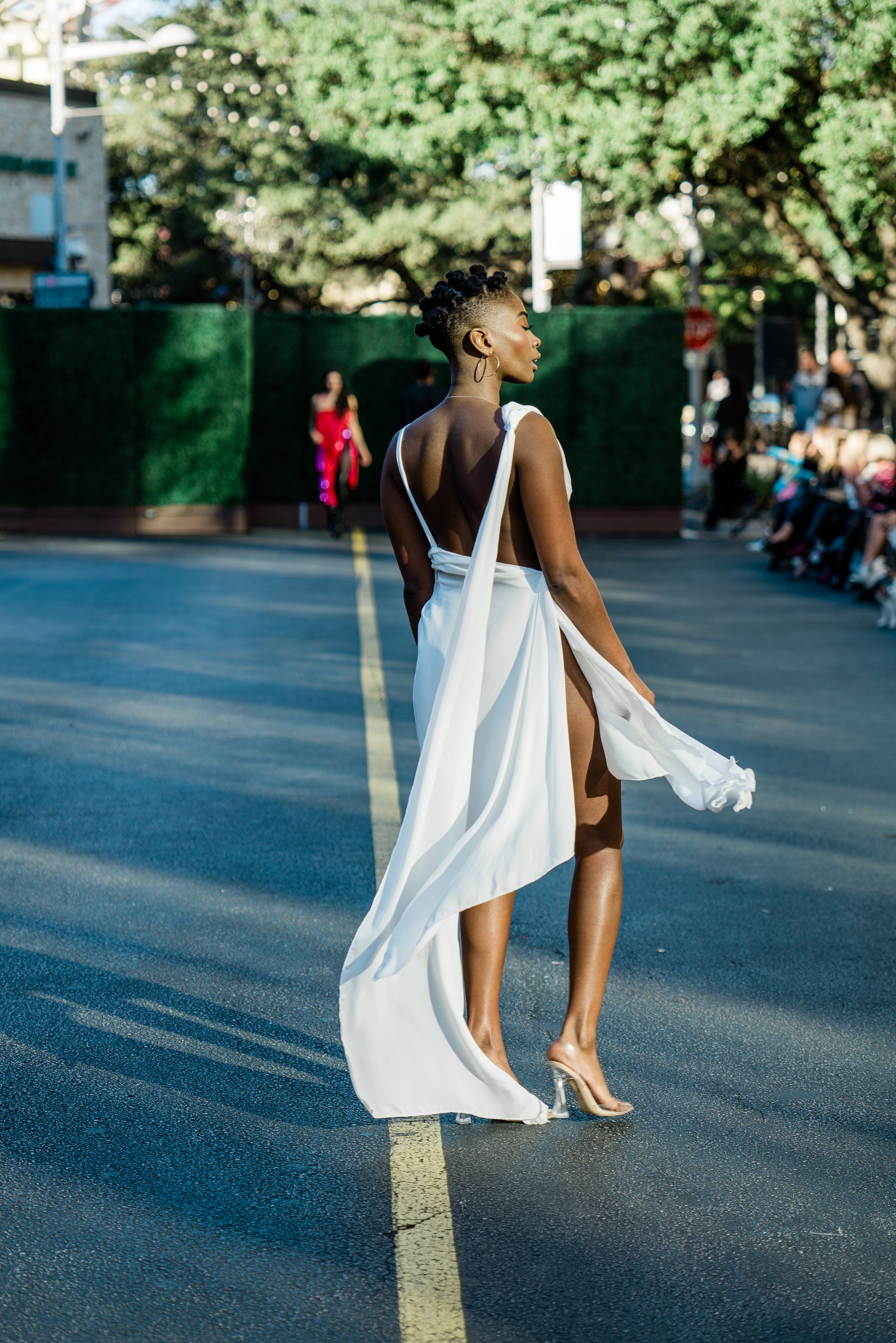 This asymmetric gown is adorned with drapery inspired by the likes of Ancient Romans and Greek Goddesses. The cowl neckline, side seam pleats, spaghetti strap, cape-like strap, and asymmetric hemline seamlessly flows together for the perfect Highest Self design. This dress will instantaneously make your inner Goddess shine through.