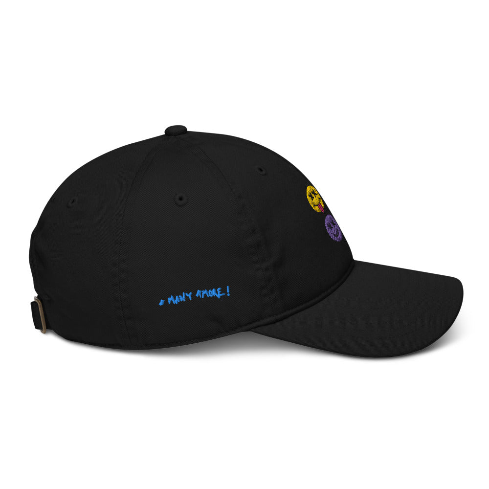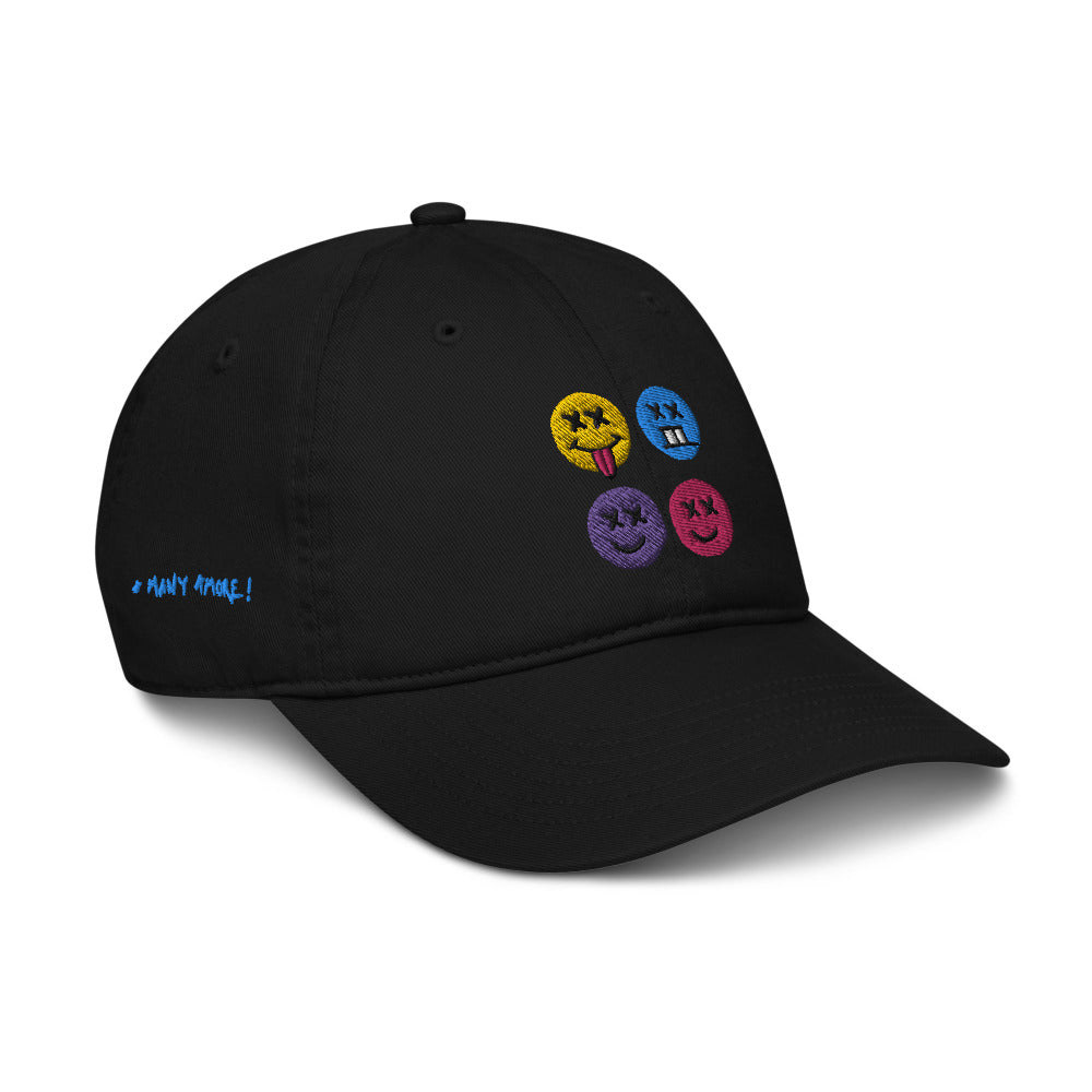 Featuring our + MANY AMORE! original emoji faces embroidered on the front. Inspired by the past year's many moods, the faces celebrate FS7's first birthday. A slight change from the original colored print, the first face is yellow, sticking out a pink tongue for a silly mood. Wanting to use roman numerals in the design, the blue face originates from XXIII, a subtle nod to out Founder's birthday being in 1997, The XX turned into the eyes and the III became the mouth. This face, next to the first one, stays consistent from the original print color. The two smiling faces below, are reimagined in purple and neon pink. The right side of the hat reads "+ MANY AMORE!" in our signature hand-painted font style, embroidered in a vibrant blue. On the back, the Formula S7 logo is embroidered in black. Practical and stylish, choose between 5 different color choices to perfectly match your outfits and personality!