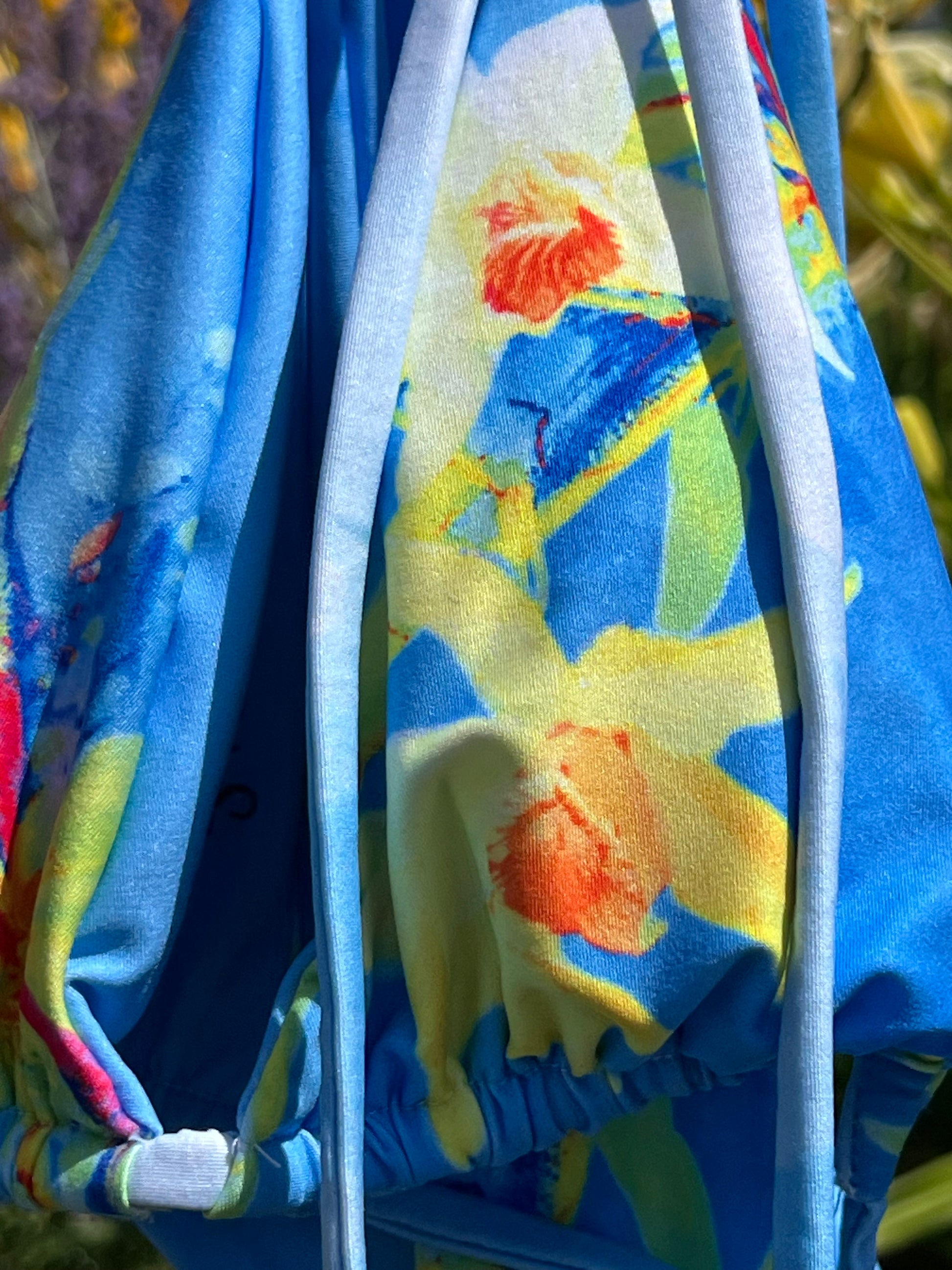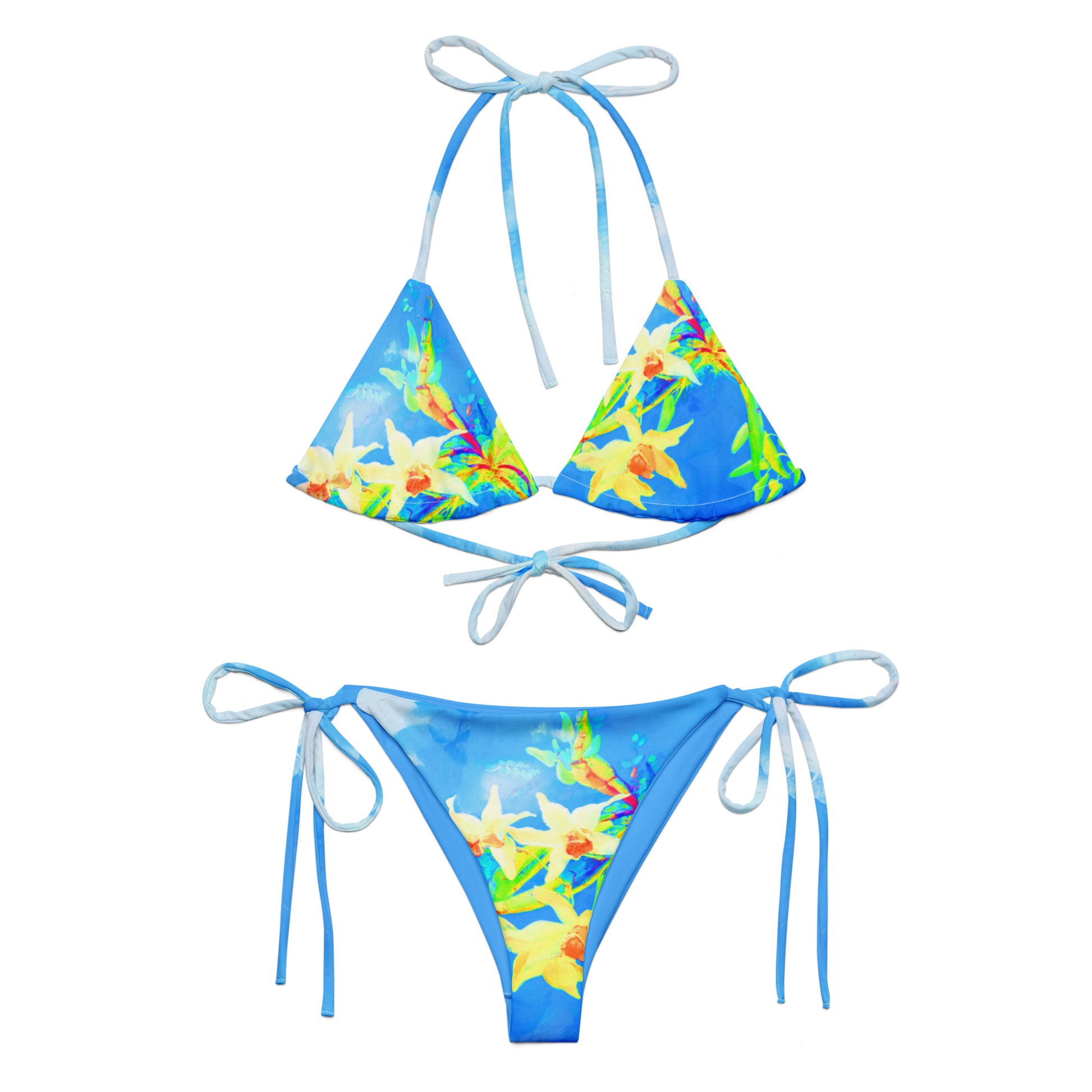 Ignite your summer style with the Neon Blooms Bikini from the Botanica Reverie collection. Featuring a striking neon orchid print in electric hues of yellow, red, orange, and green, this bold design pops against a vibrant sky blue base. The combination of vivid colors creates a high-energy look that's as eye-catching as it is fun.