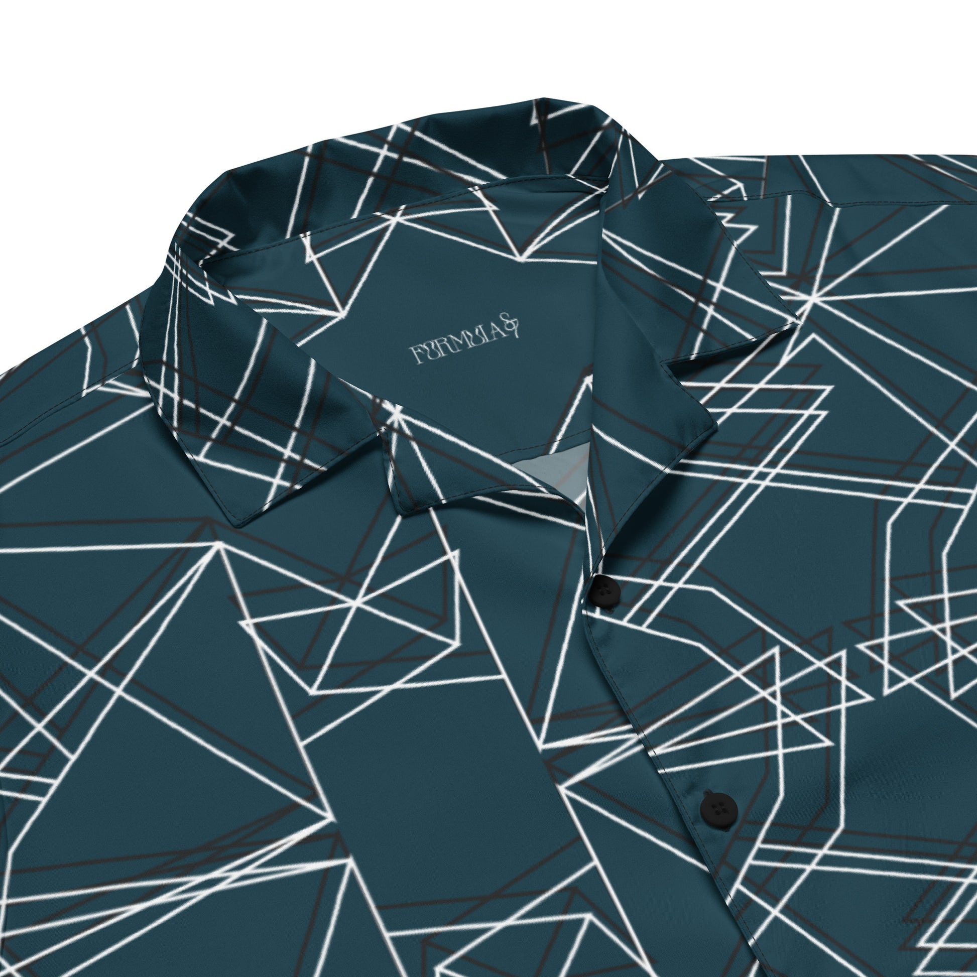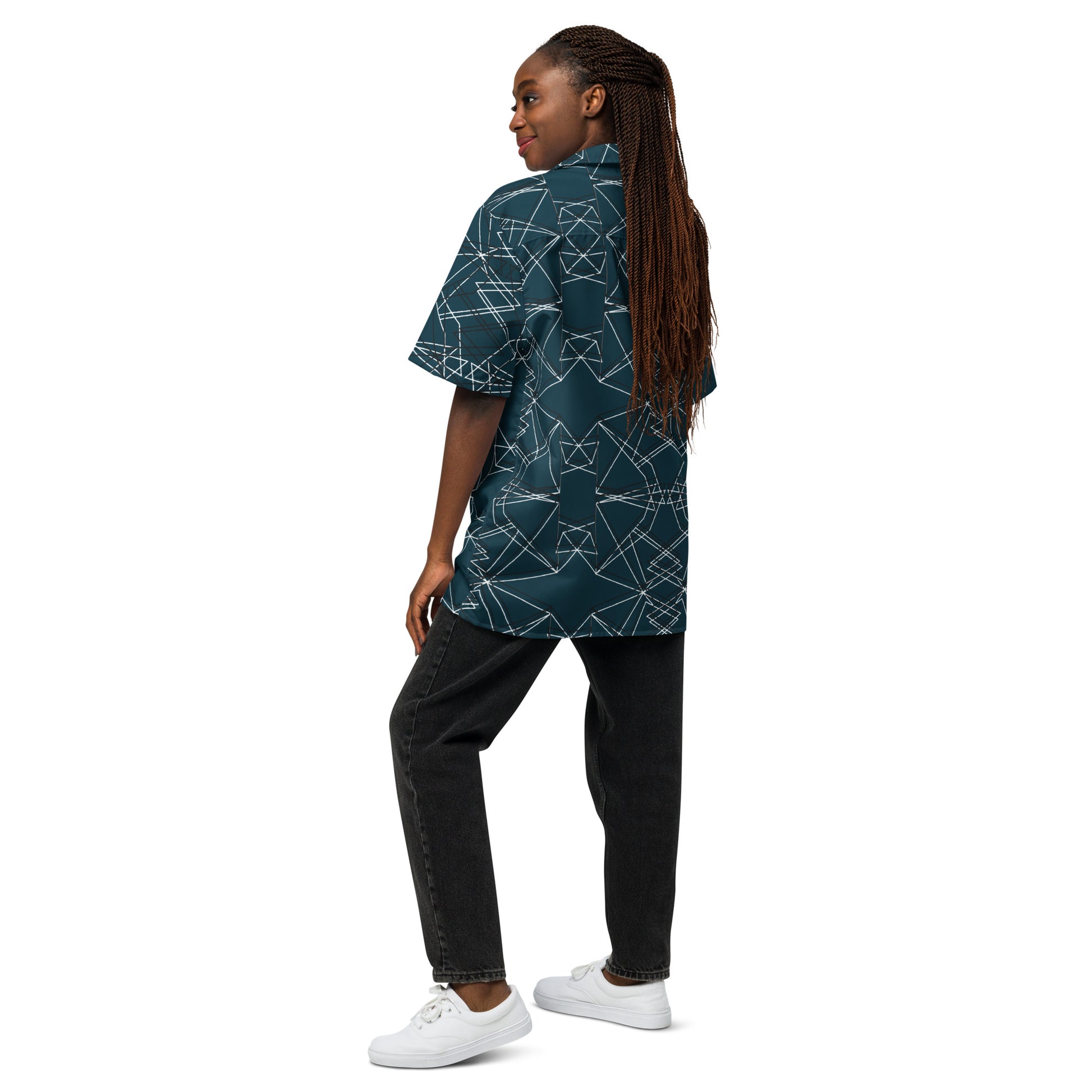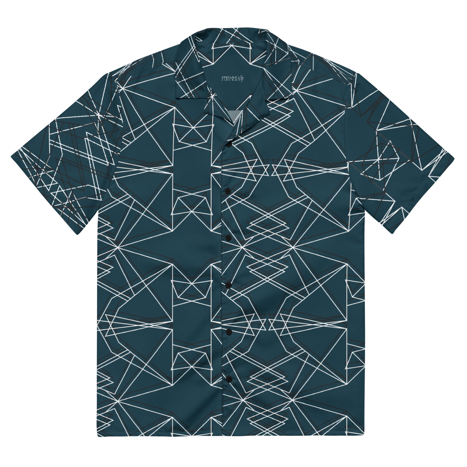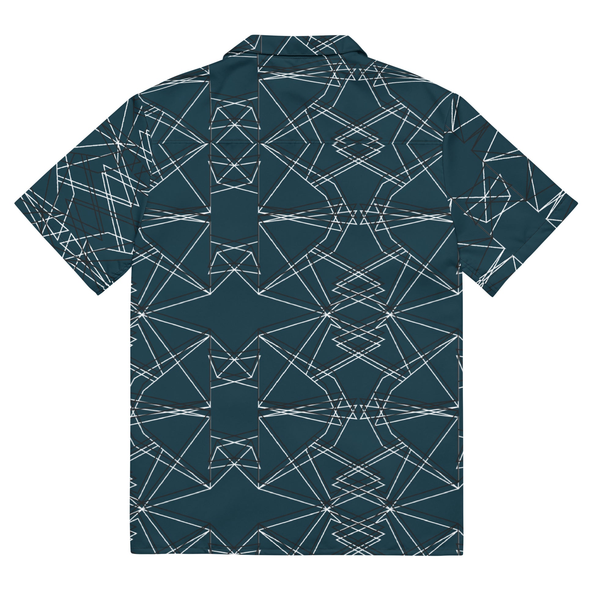 Meet your new favorite shirt! It exudes coolness both in terms of style and material. This deep blue shirt features a unique double-line geometric design inspired by an origami bird, with black and white lines creating a striking visual contrast. It's featherlight and moisture-wicking material ensures comfort even on the hottest days.