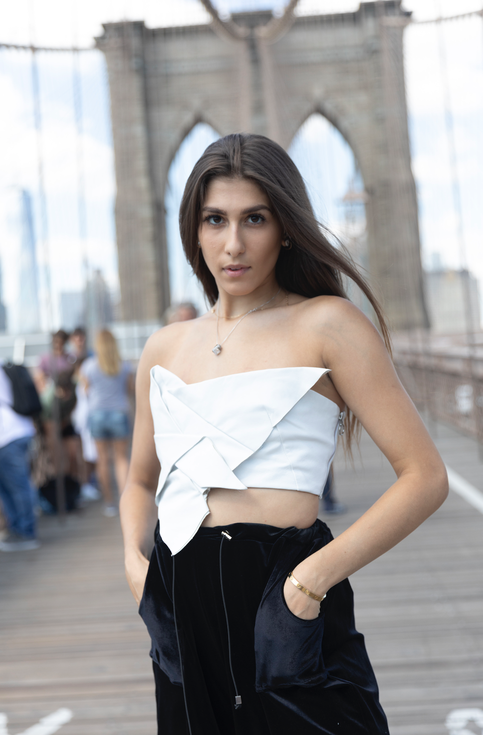 The Origami White Leather Crop Top is a unique design made from our featured origami messenger bird that inspired the SS2020 Collection. We manipulated the origami bird into this lovely abstract design for an elevated edgy crop top. It has 100% Cotton lining, removable + adjustable straps, and a side zipper for your comfort and convenience.