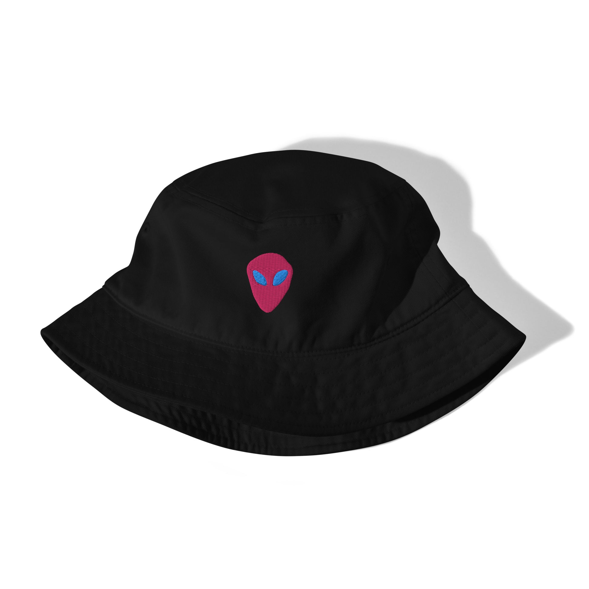 Introducing our eco-conscious 100% cotton Bucket Hat, a stylish and sustainable accessory that combines fashion-forward design with a touch of cosmic charm. Crafted for those who appreciate both style and environmental consciousness, this hat is the perfect choice. With a captivating pink alien face, accentuated by mesmerizing blue eyes, embroidered on the front, this hat is sure to make a statement and turn heads wherever you go.