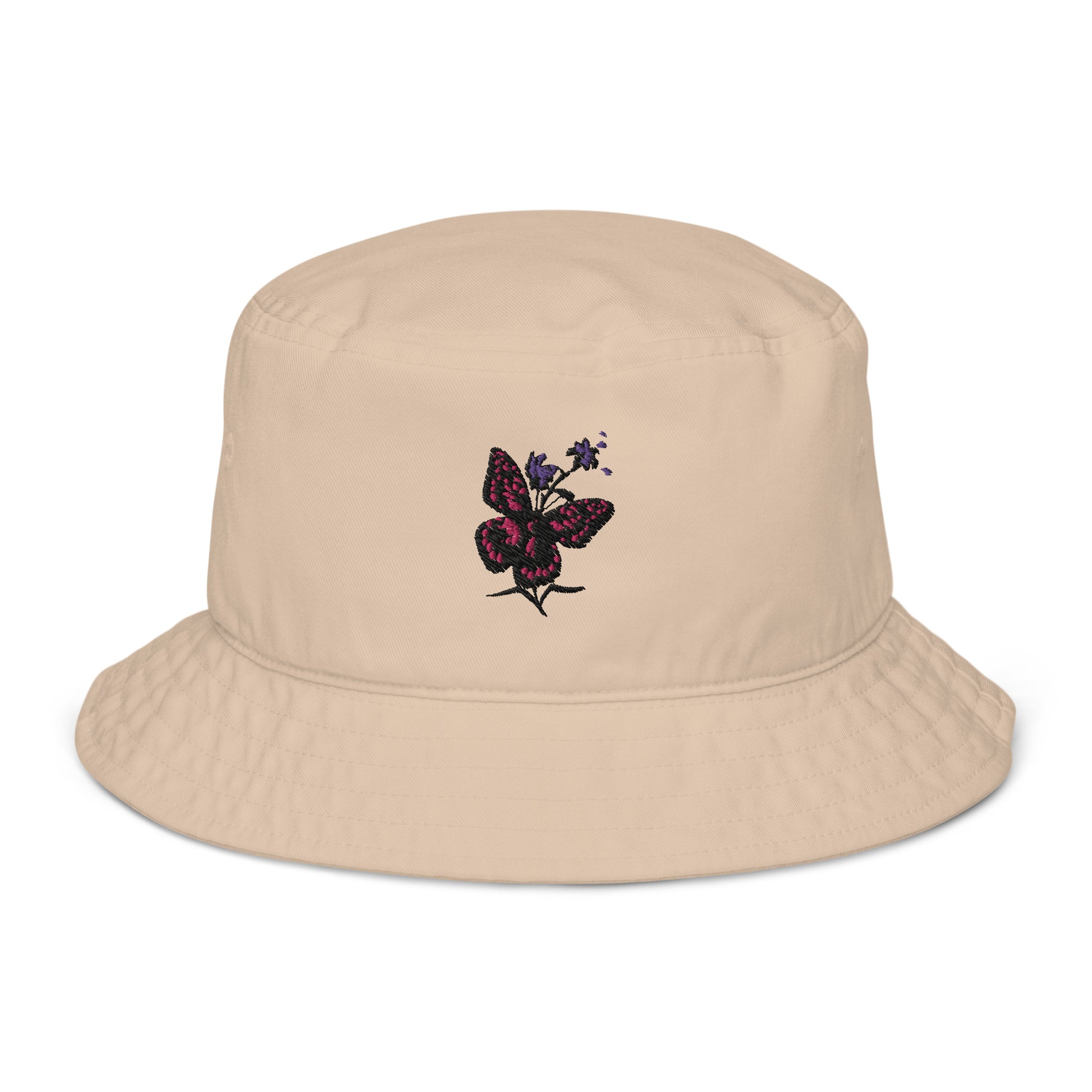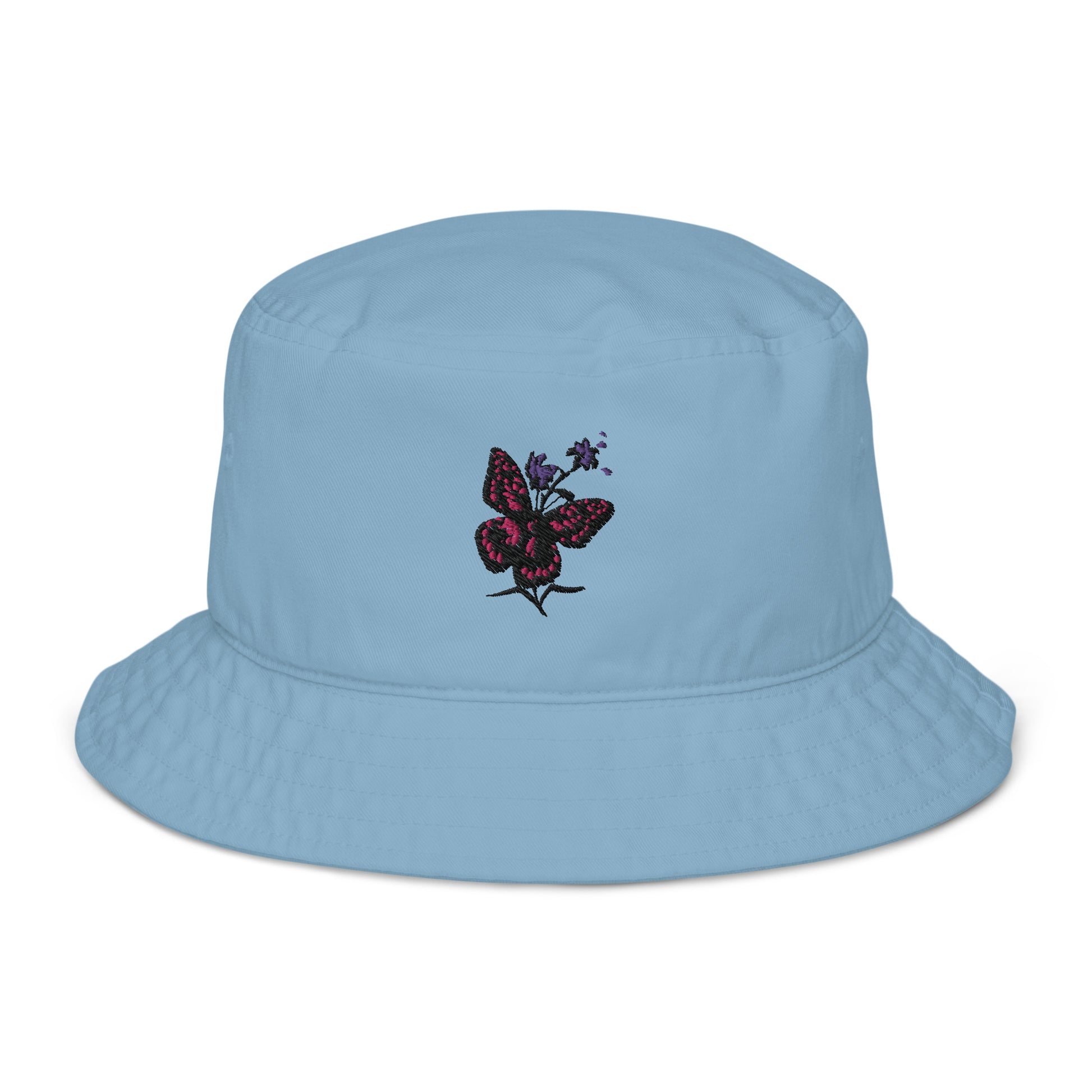 The standout feature of this hat is the captivating embroidery on the front. The butterfly, with its mesmerizing pink and orange hues, represents transformation, beauty, and freedom. The surrounding pink and purple flowers add a touch of elegance and grace. Each stitch is carefully made with eco-friendly thread, ensuring that every detail is environmentally conscious.