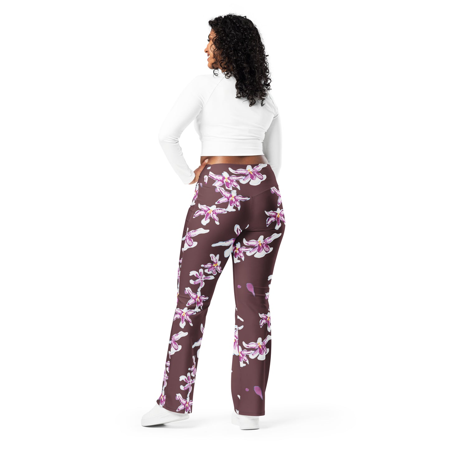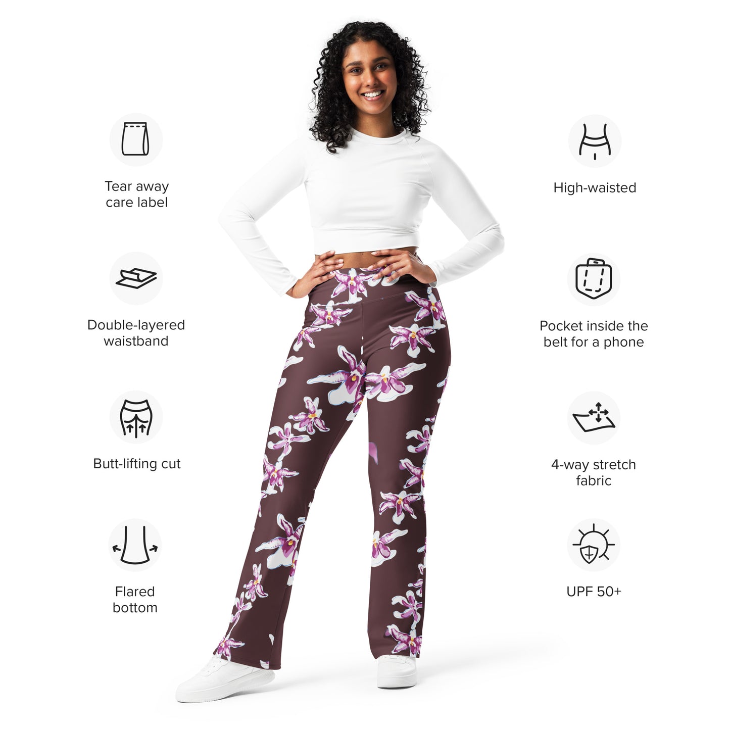 Designed to enhance your figure, these trendy leggings feature a high waist and a butt-lifting cut. The flared leg bottoms add a touch of style and make the leggings comfortable. Wear them on a walk, to the gym, or style them with the Sandy Orchid Blooms Recycled Bikini!