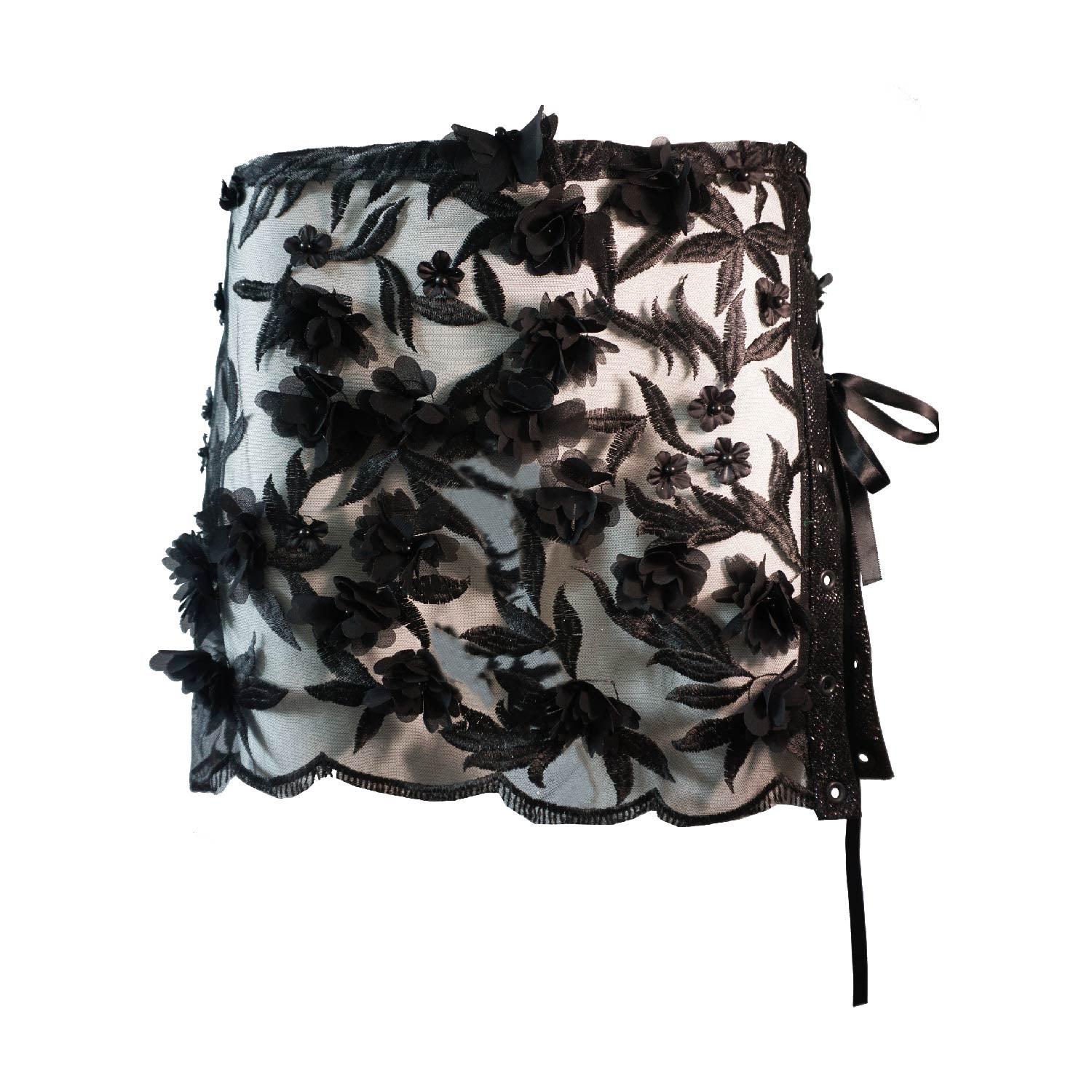 This stunning Sheer Floral Embroidered Mini Skirt is the perfect swim cover-up. The intricate floral embroidery and delicate beads add a touch of elegance, while the lace-up detail on the side adds a modern twist. Its lightweight sheer fabric allows for breathability, making it the perfect choice for a day at the beach or pool. Available in classic black.