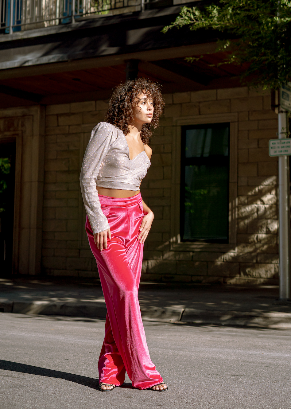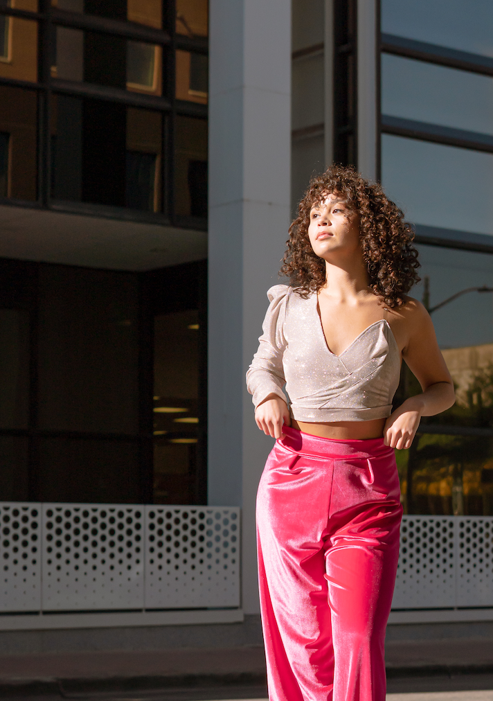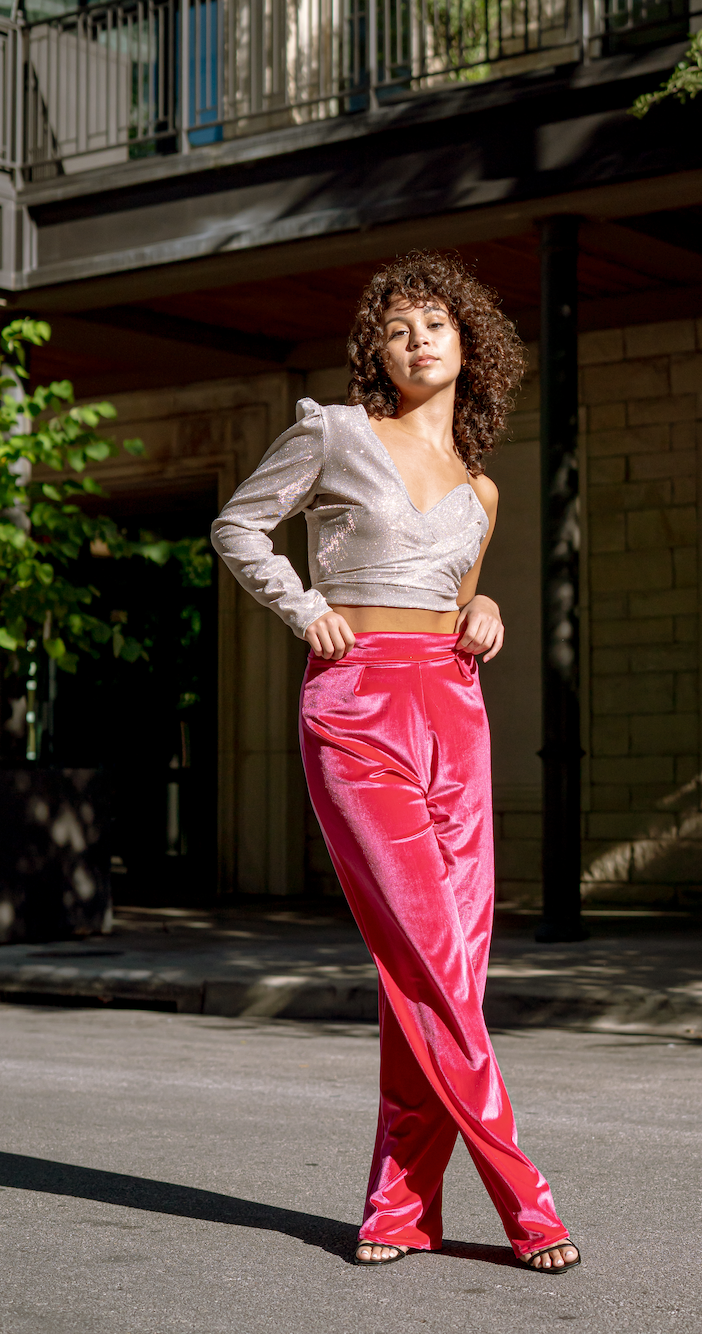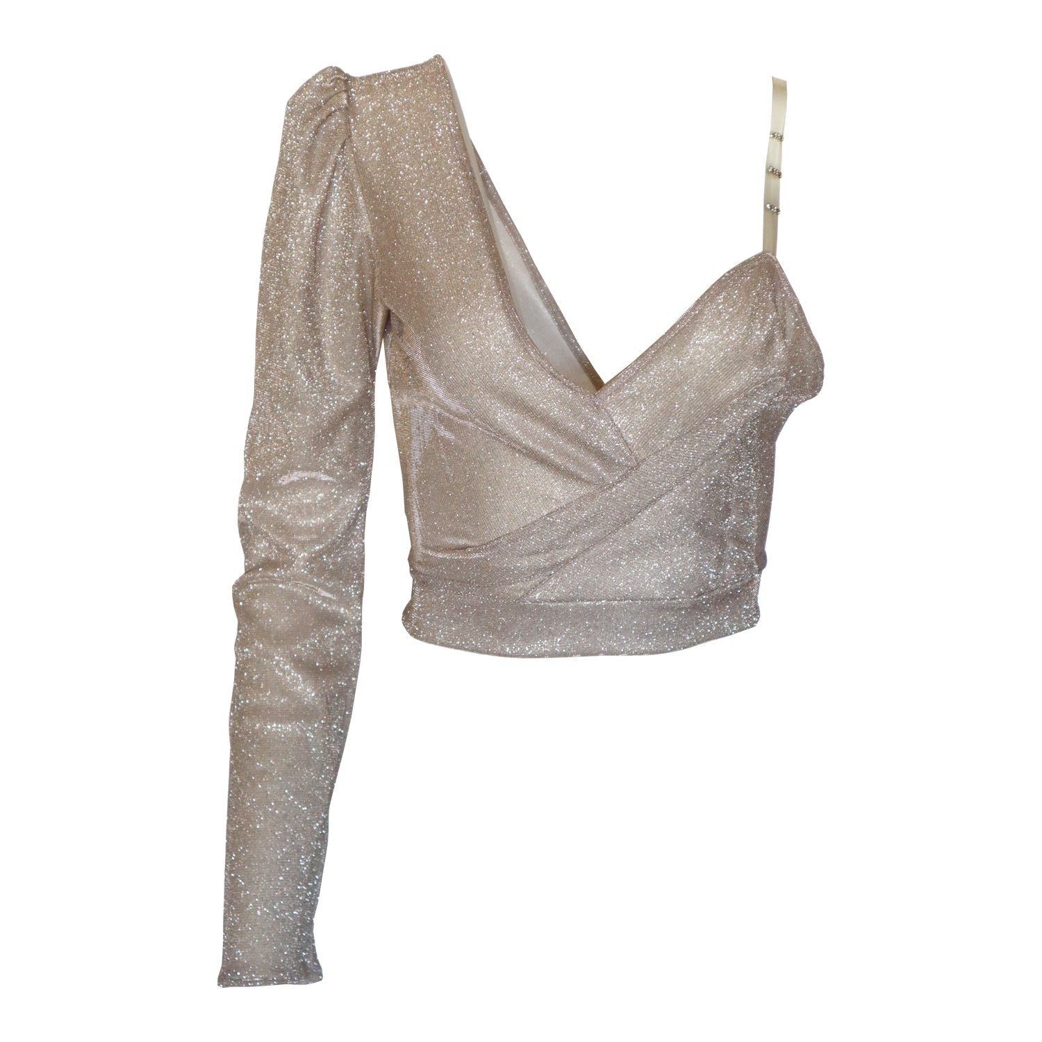 This unique piece features asymmetrical design lines that flow with the body for a perfect shape. With one puff sleeve and one clear strap with three studded simulated diamond details, this is the perfect mix between glamour with a little bit of edge. Made with a beautiful, shimmering ivory color fabric with just enough stretch to conform to your body shape for a flattering and sexy look. It showcases three beautiful simulated diamond stud hook and eye closures in the back and an adjustable strap that can remove in the back, so we can make your life easier when you put it on and take it off. Wear a show stopper this season when you pick the Silver Sparkle Crop Top. Perfect for weddings, going out, and special event. Plus, it's one of a kind so, you are sure you'll be the only one with this look to stand out and have everyone showering you with compliments all night.