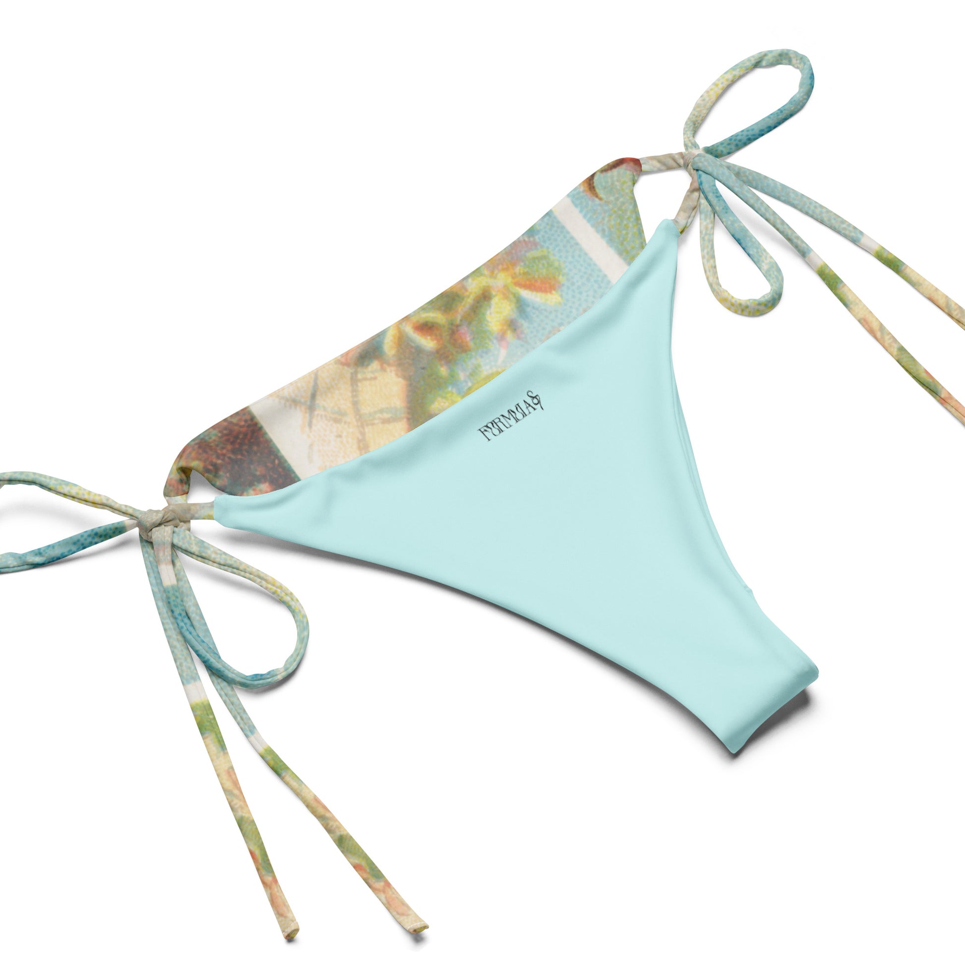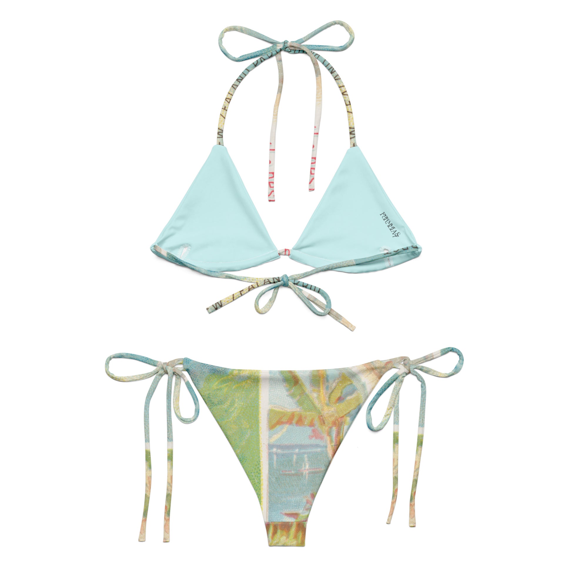 Escape to paradise with our Recycled String Bikini adorned in 'The Tropics' print – a celebration of sustainable style and exotic allure. Crafted from recycled materials, this bikini not only reflects your commitment to eco-conscious living but also transports you to a tropical oasis. The print features a breathtaking scene of the ocean, palm trees swaying in the breeze, and vibrant florals beneath a balcony. The mesmerizing imagery captures the essence of a dreamy getaway, making this swimwear a perfect blend of environmental responsibility and wanderlust-inspired chic.