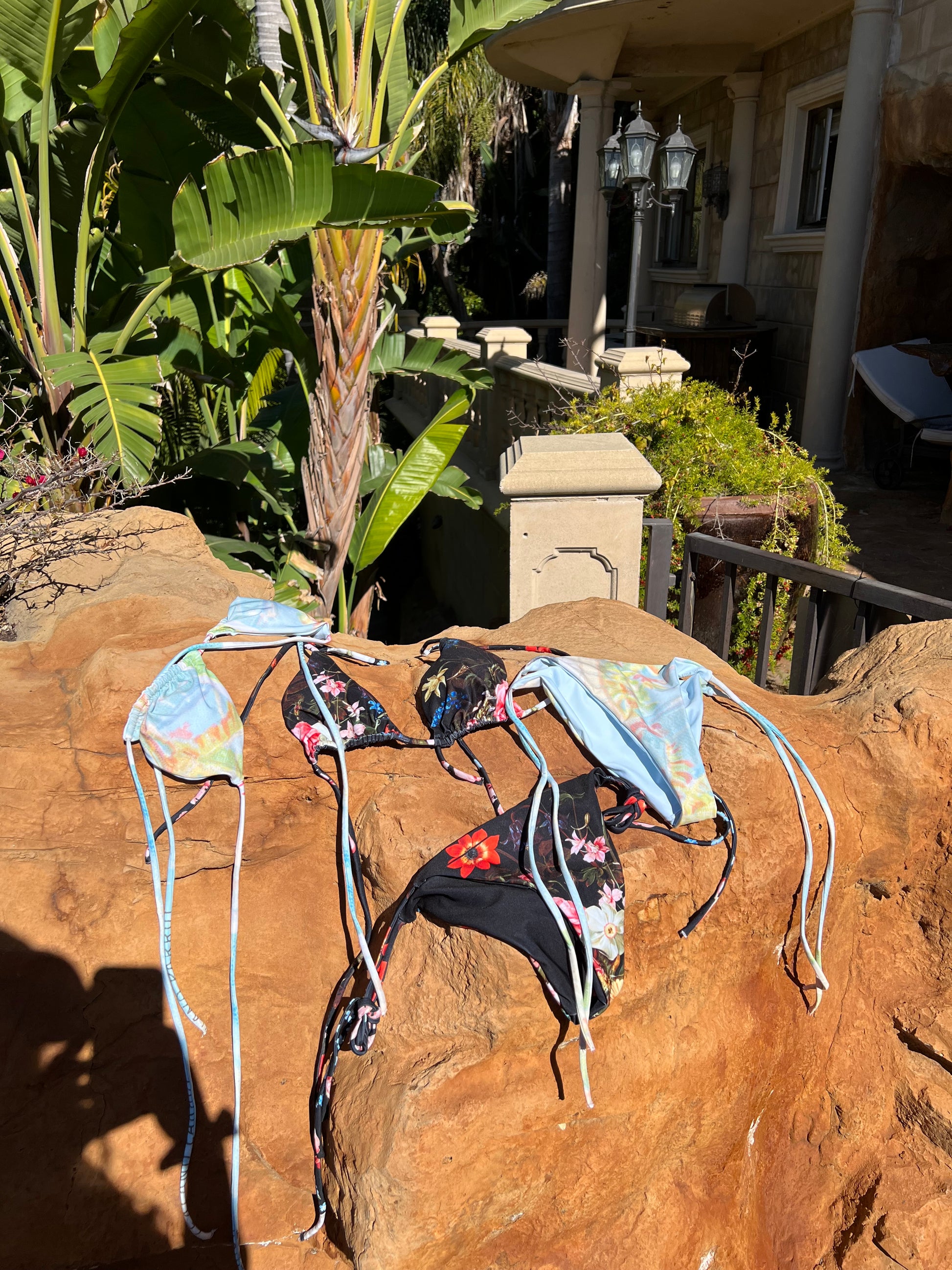 • To make your All-Over Print Recycled String Bikini last longer, thoroughly rinse it off after each use and get rid of any chlorine/salt residue.