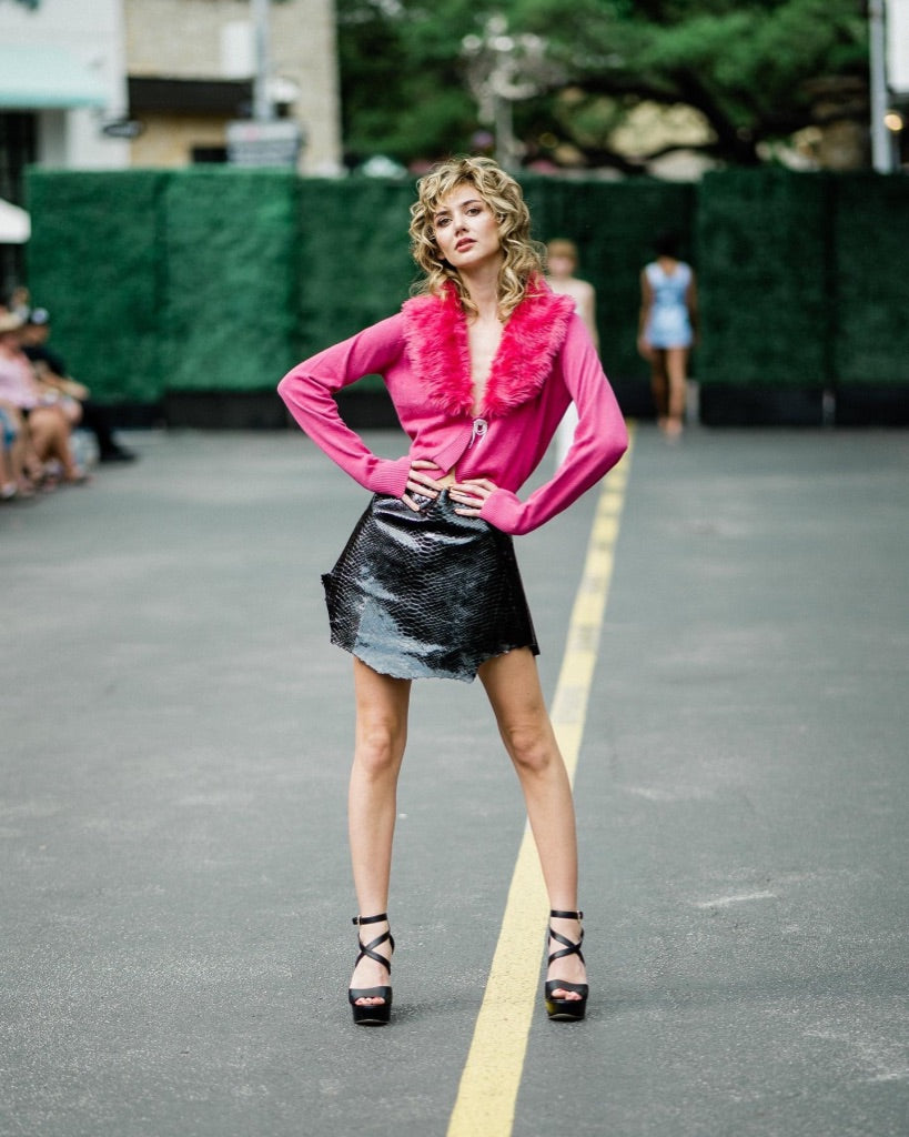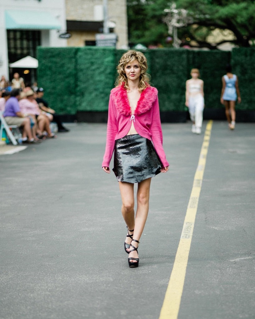 She is a little miss pretty in pink cardigan sweater! Pulled from the archives of vintage fashion and transformed into this cute and sexy number. Some vintage embroidered detailing has been replaced with the bejeweled crystal fringe detail on the button for a modern take on the cropped sweater. The hot pink color is always in trend and the removable faux fur color makes this a perfect piece year - round! The knit fabric is light-weight, breathable, and oh so comfy!!