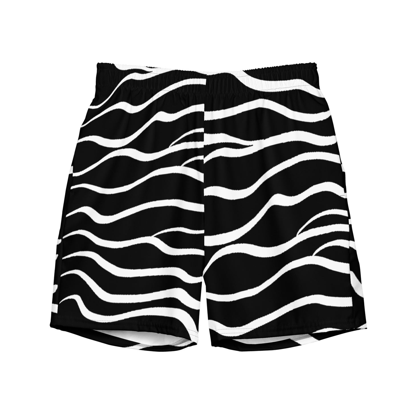 Take on summer with the Night Safari Swim Trunks, featuring bold white zebra stripes on a sleek black backdrop. This daring design combines edgy contrast with timeless style, making it the perfect statement piece for any poolside adventure.